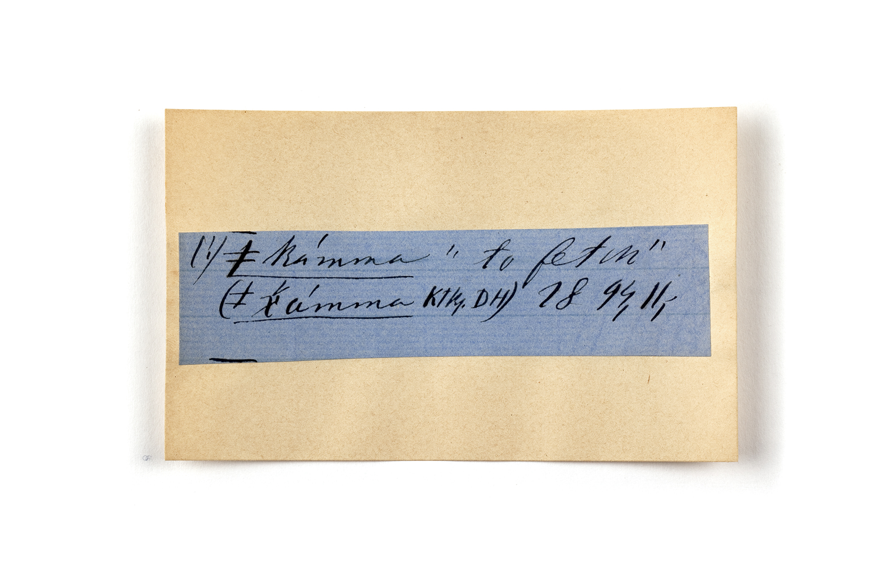 ink on blue paper glued on card