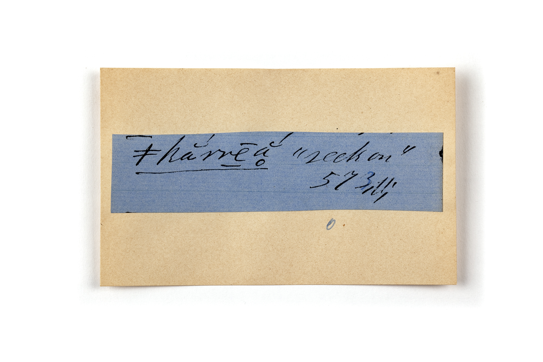 ink on blue paper glued on card