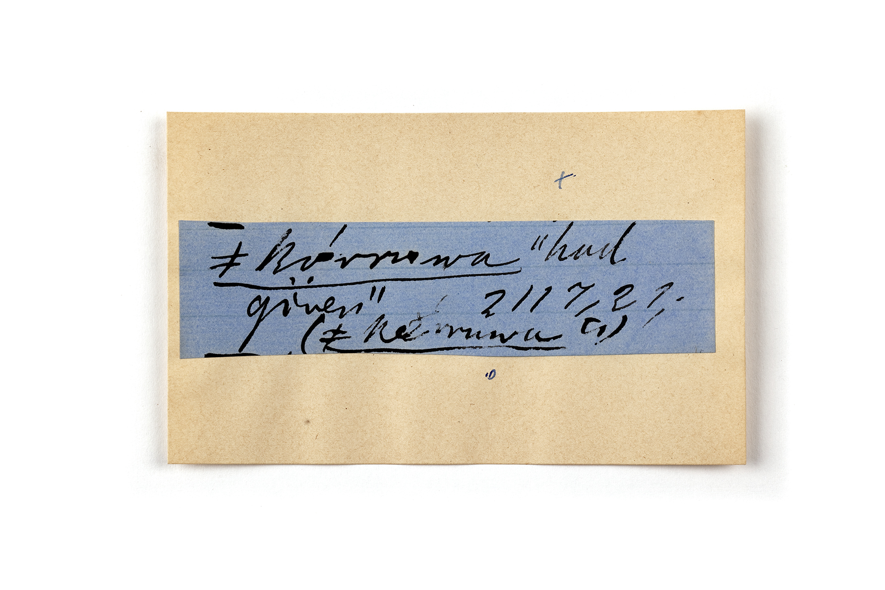 ink on blue paper glued on card
