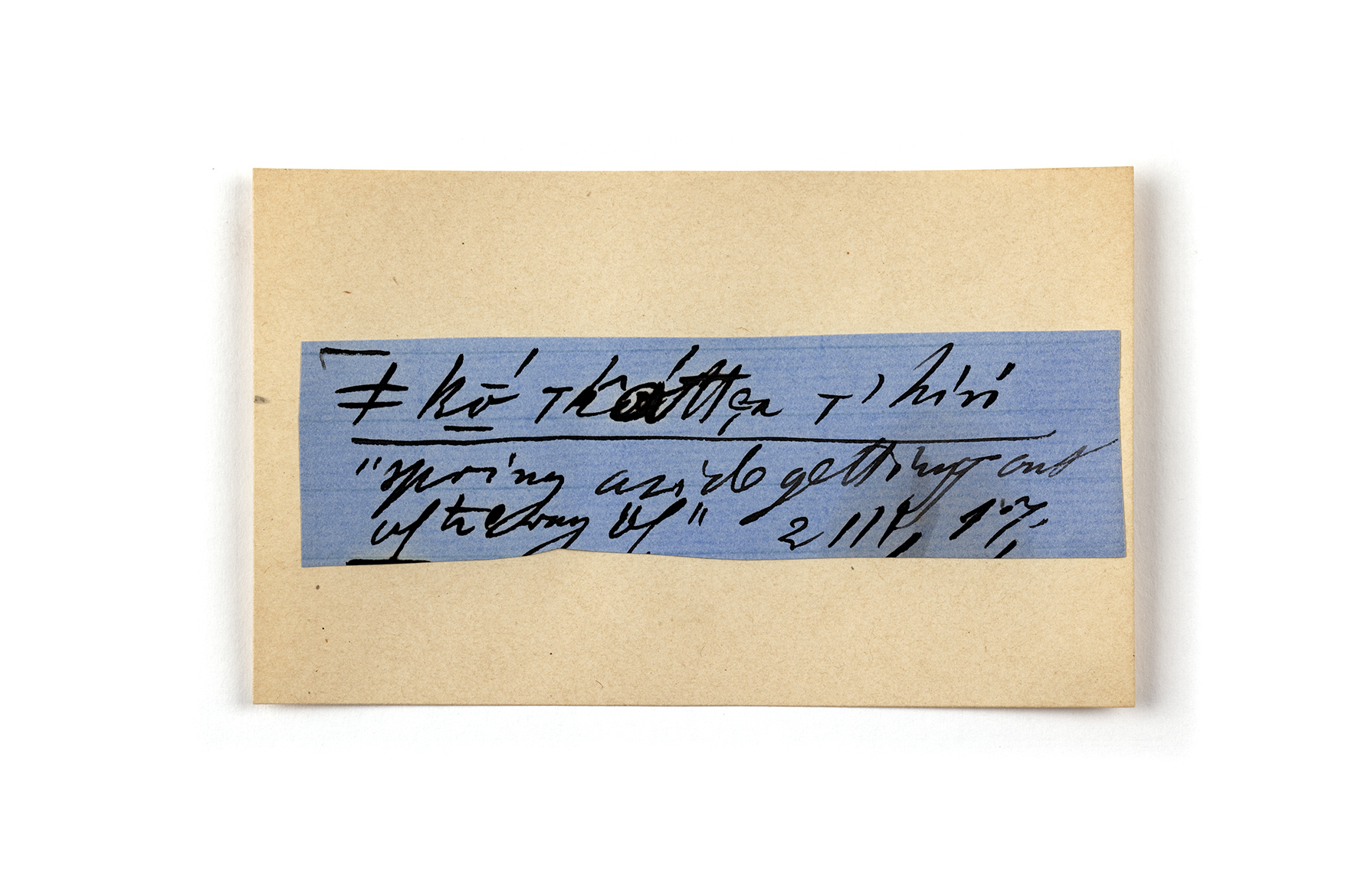 ink on blue paper glued on card