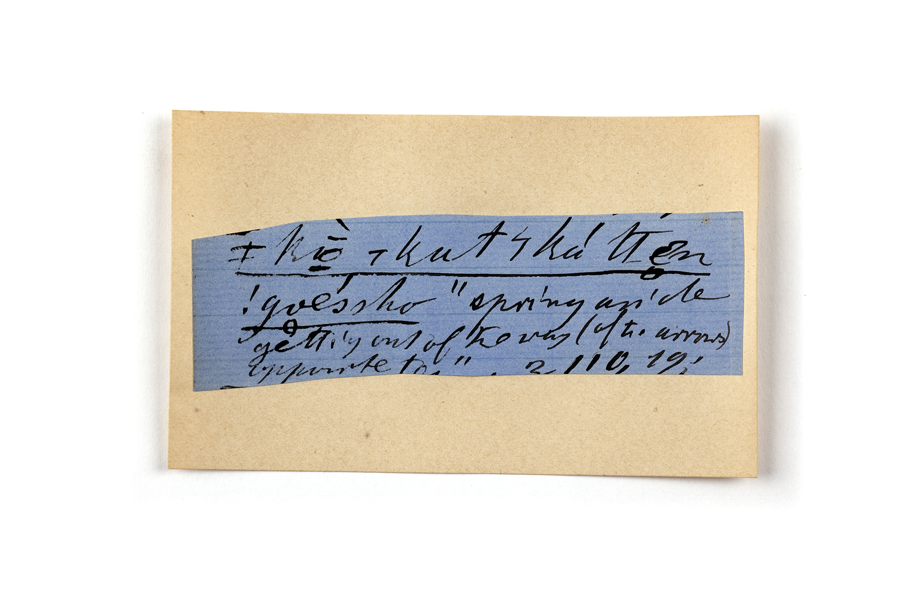 ink on blue paper glued on card