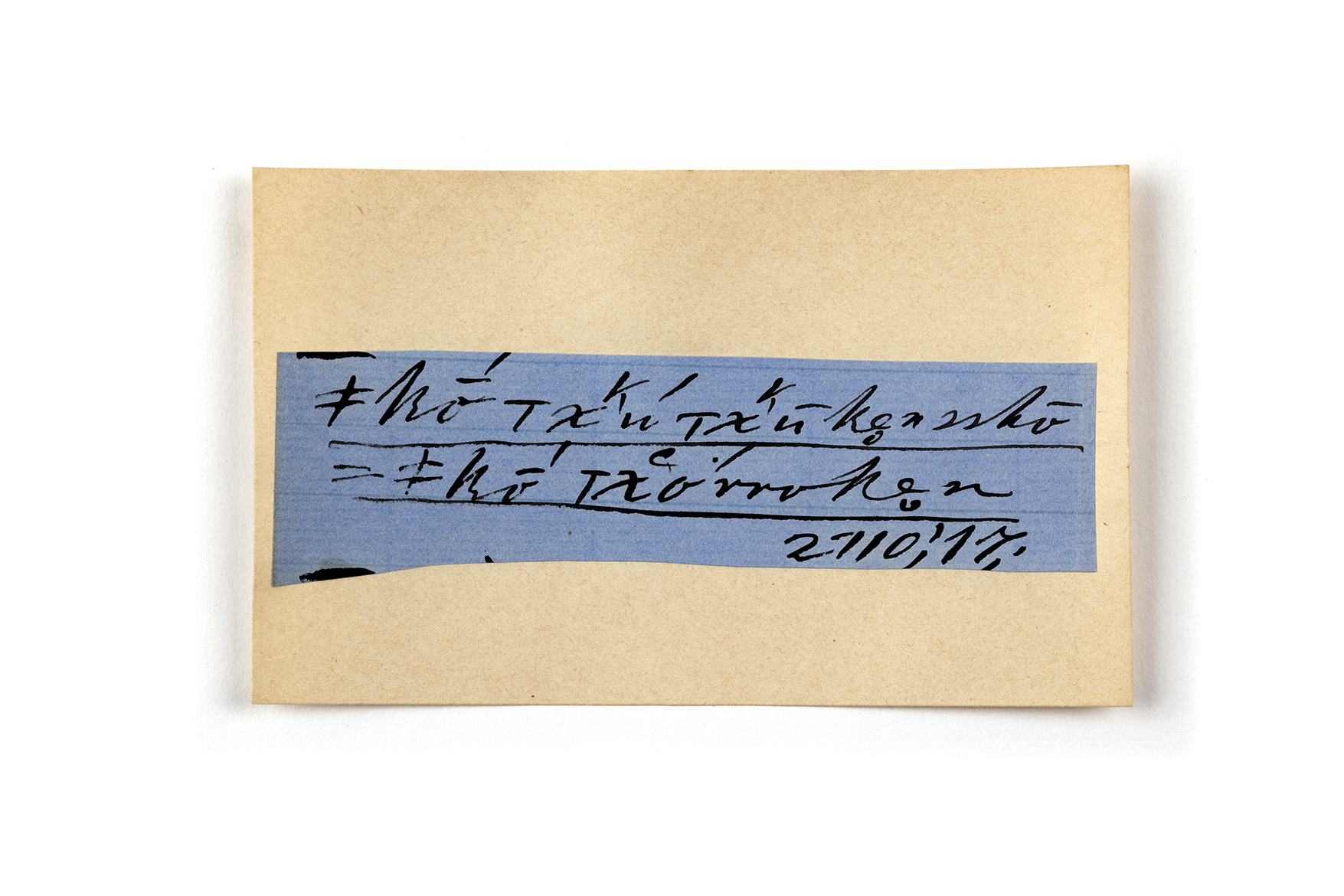 ink on blue paper glued on card