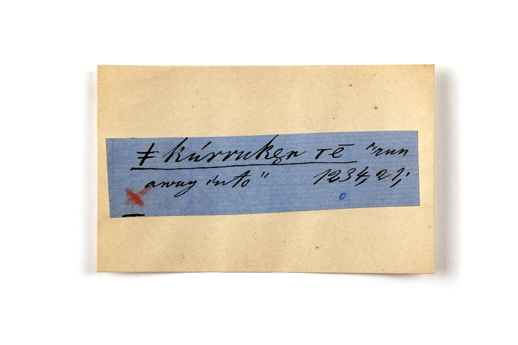 ink on blue paper glued on card