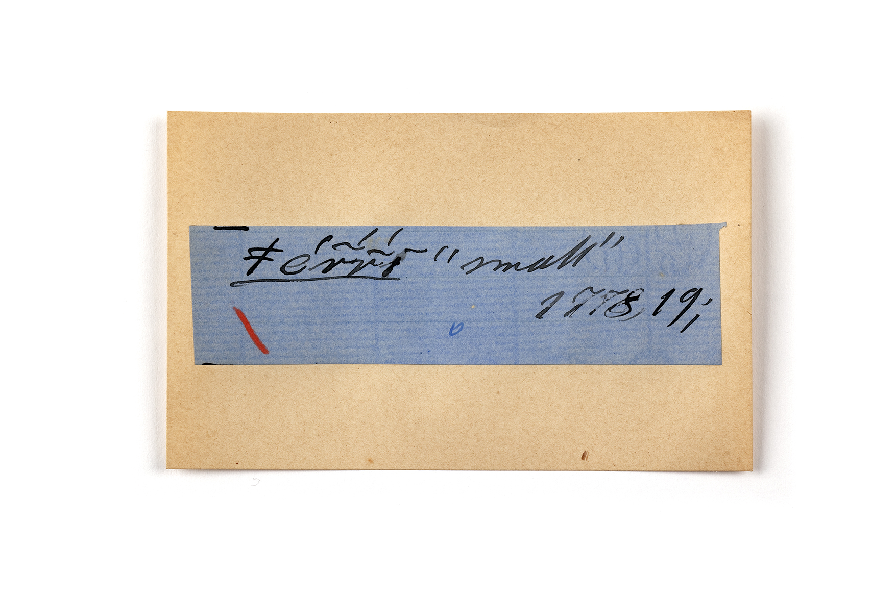 ink on blue paper glued on card