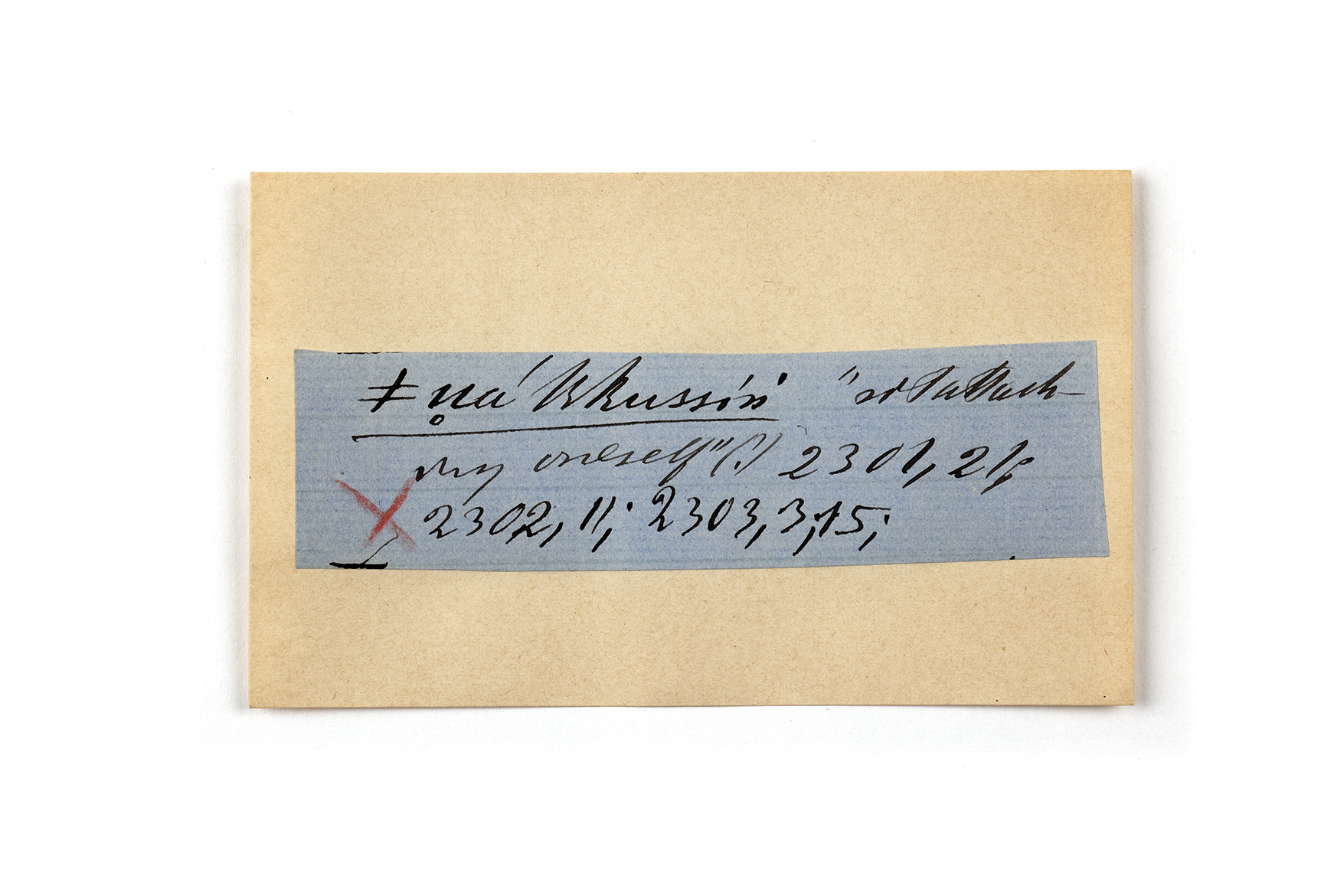 ink on blue paper glued on card