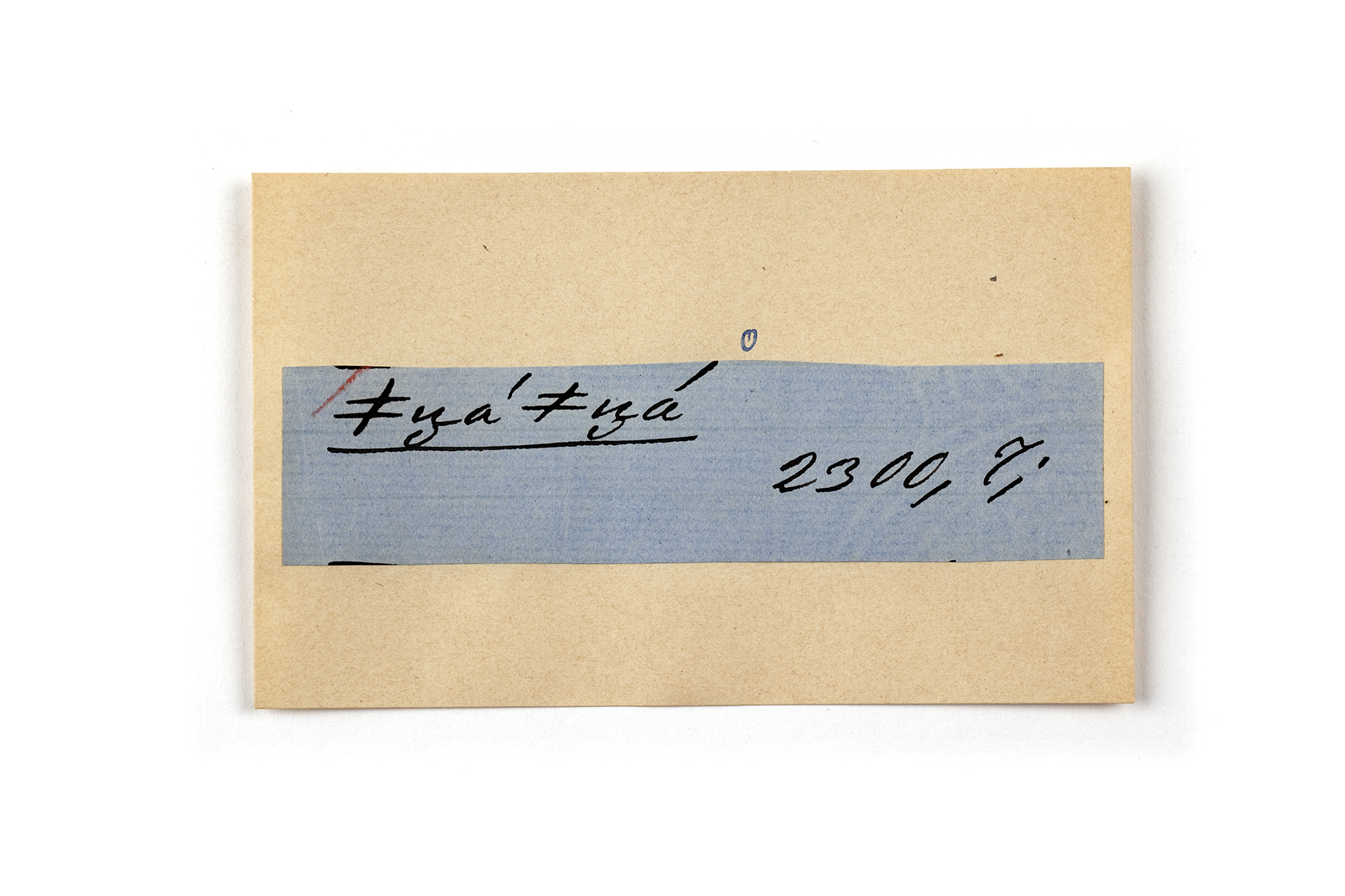 ink on blue paper glued on card