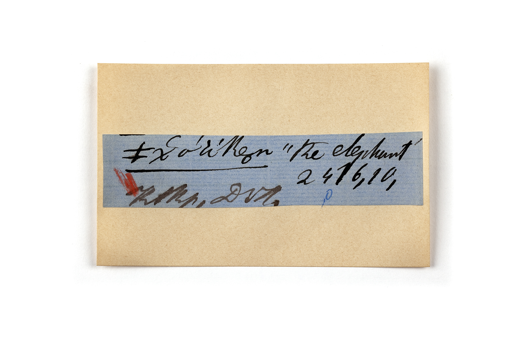 ink on blue paper glued on card