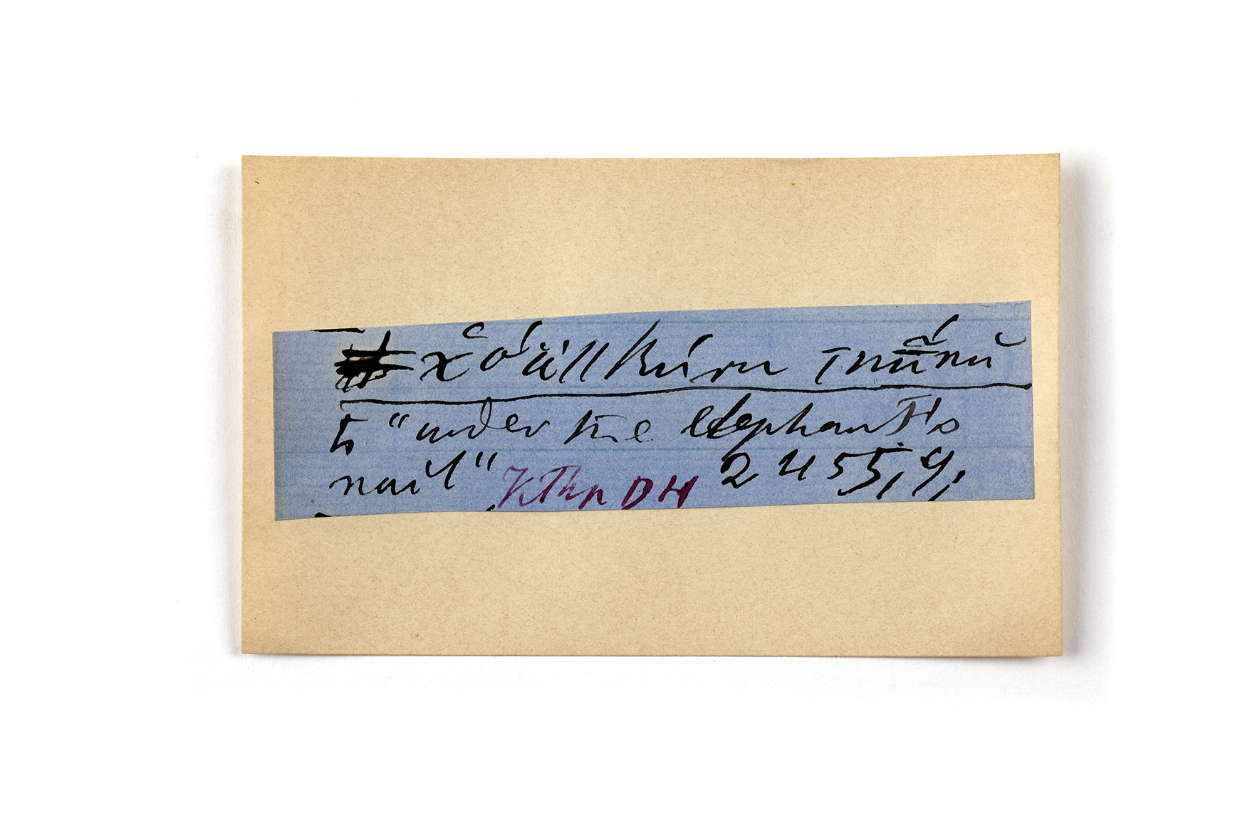 ink on blue paper glued on card