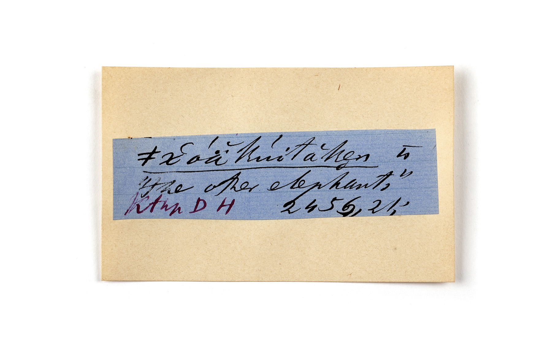 ink on blue paper glued on card