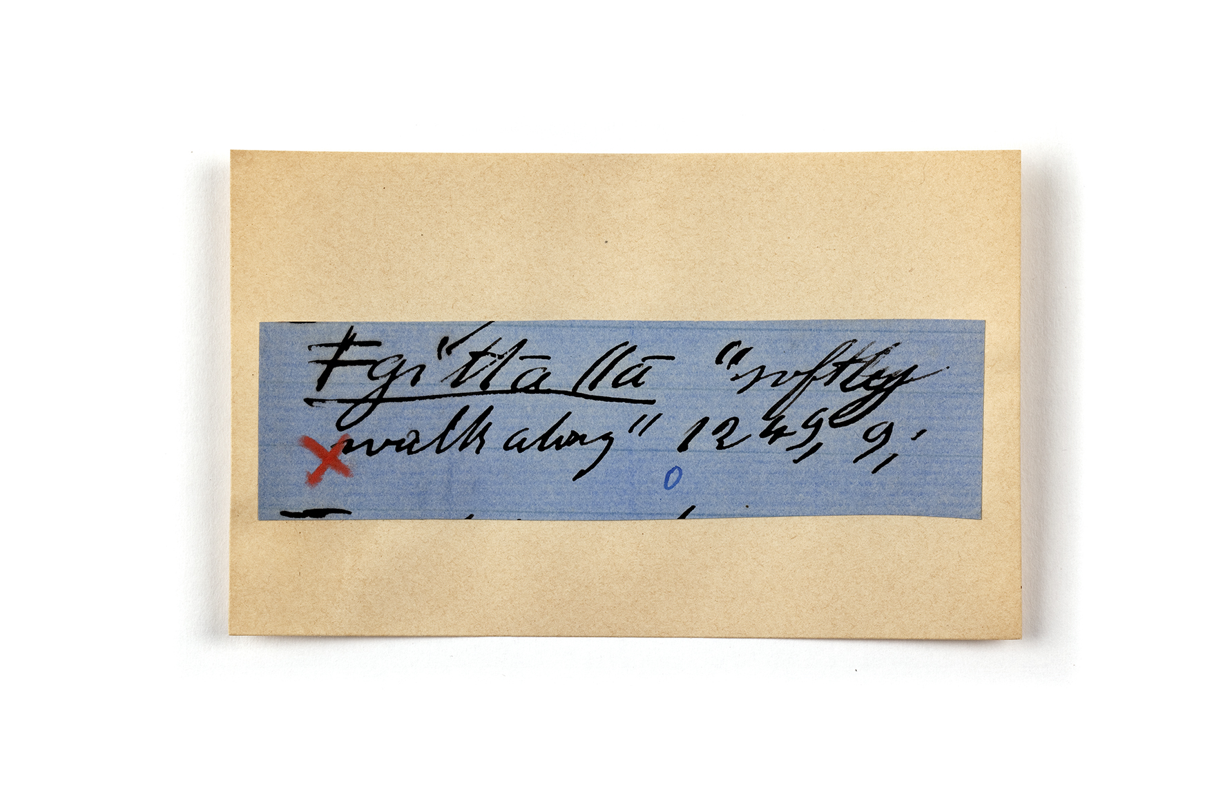 ink on blue paper glued on card