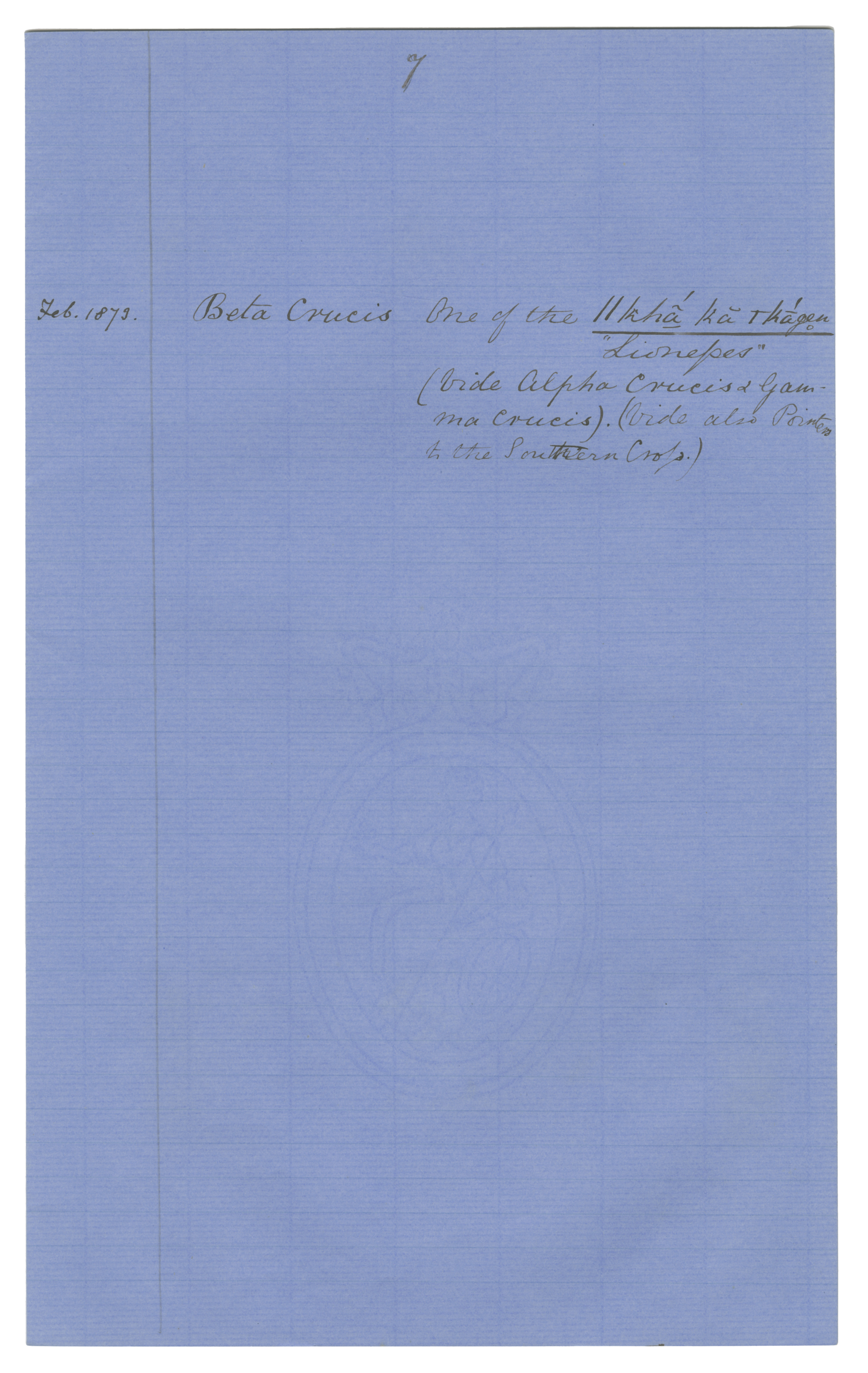 Handwritten unpublished notes by Wilhelm Bleek. MS. On blue foolscap folio (watermarked with seated Britannia). The lighter, better-formed script is likely LC Lloyd's.