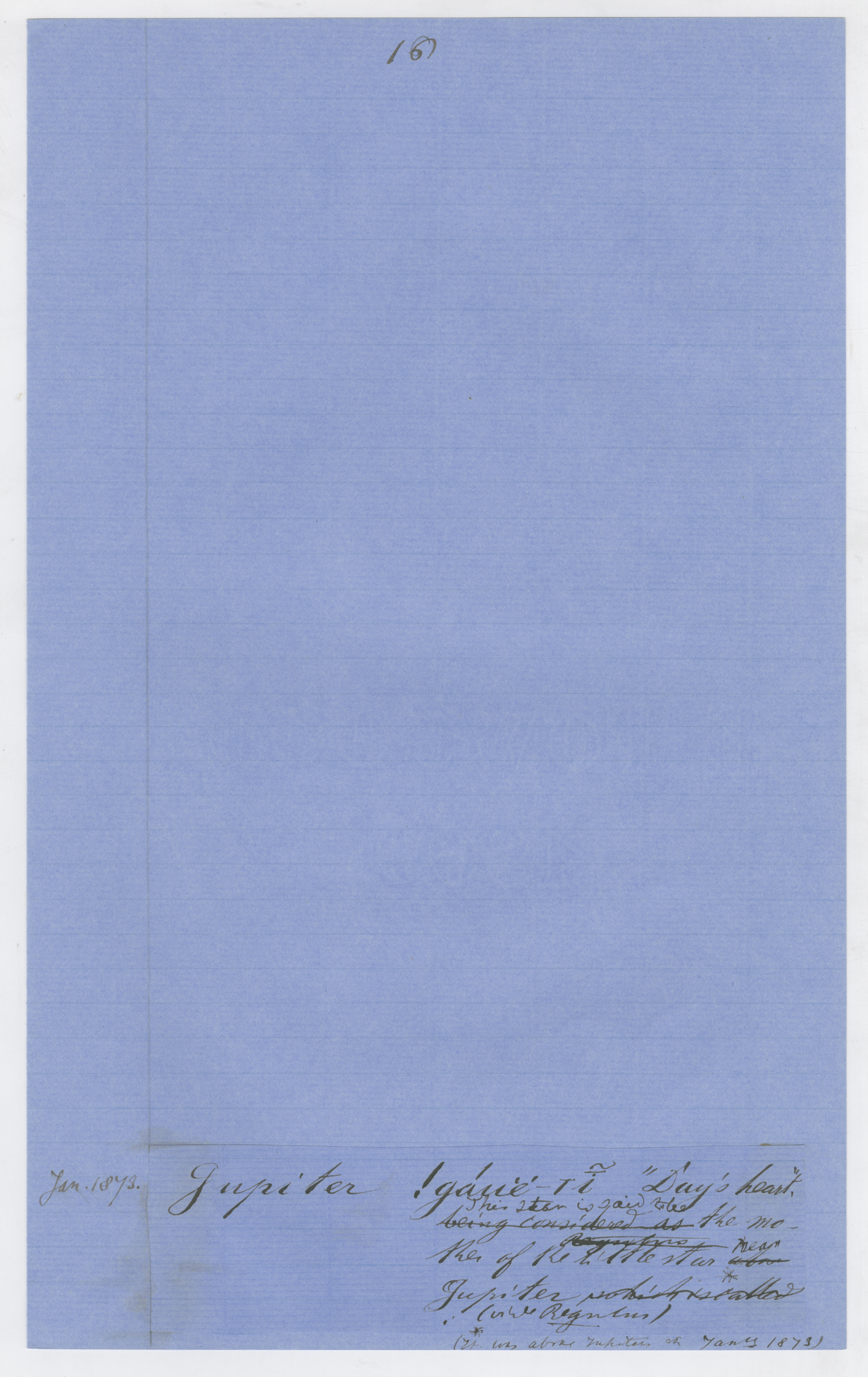Handwritten unpublished notes by Wilhelm Bleek. MS. On blue foolscap folio (watermarked with seated Britannia). The lighter, better-formed script is likely LC Lloyd's.