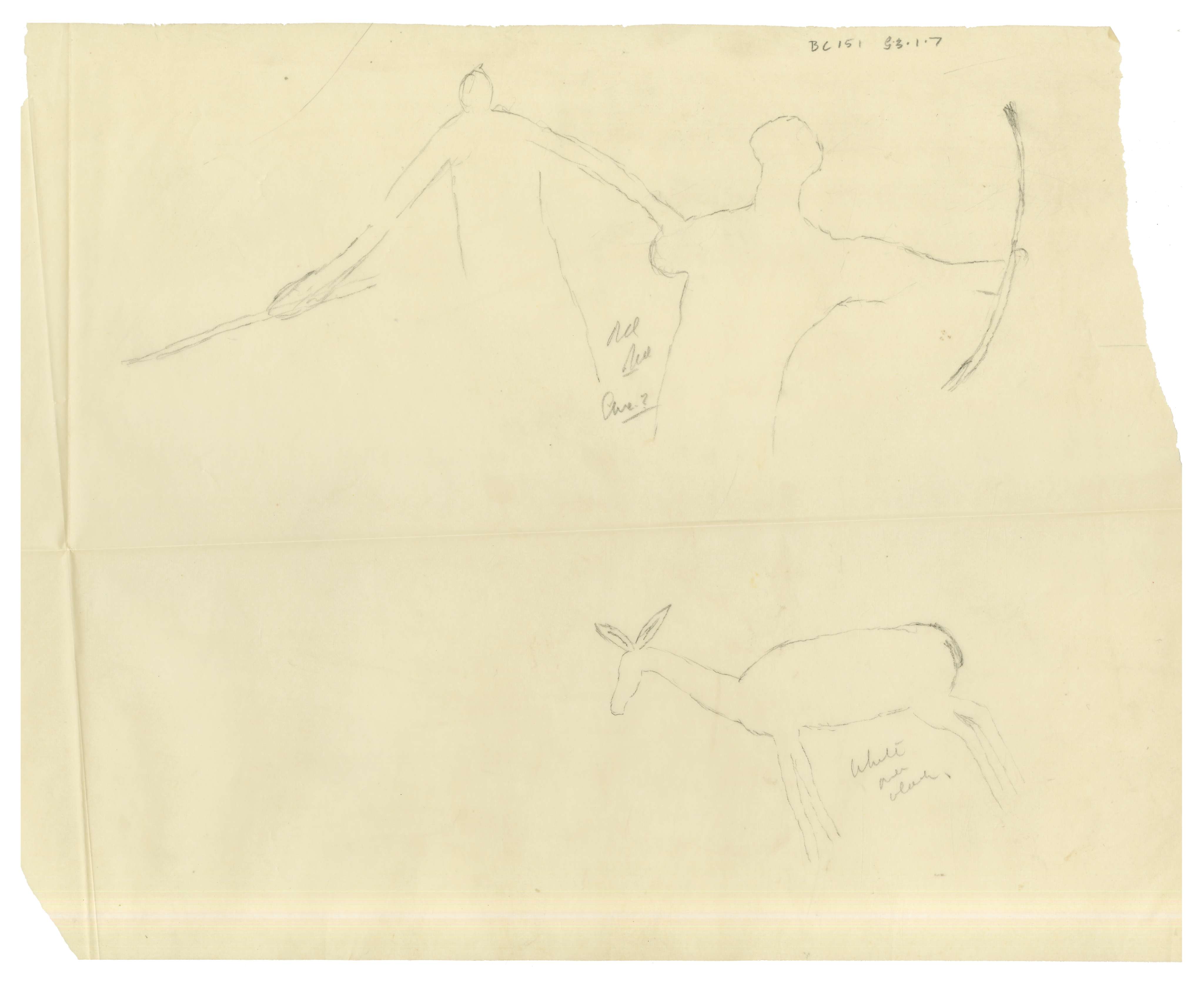 Bushman drawings, Gowa, rock art (tracings of), tracings, Croxley drawing book (sketchbook), sketchbook (with notes on colour)