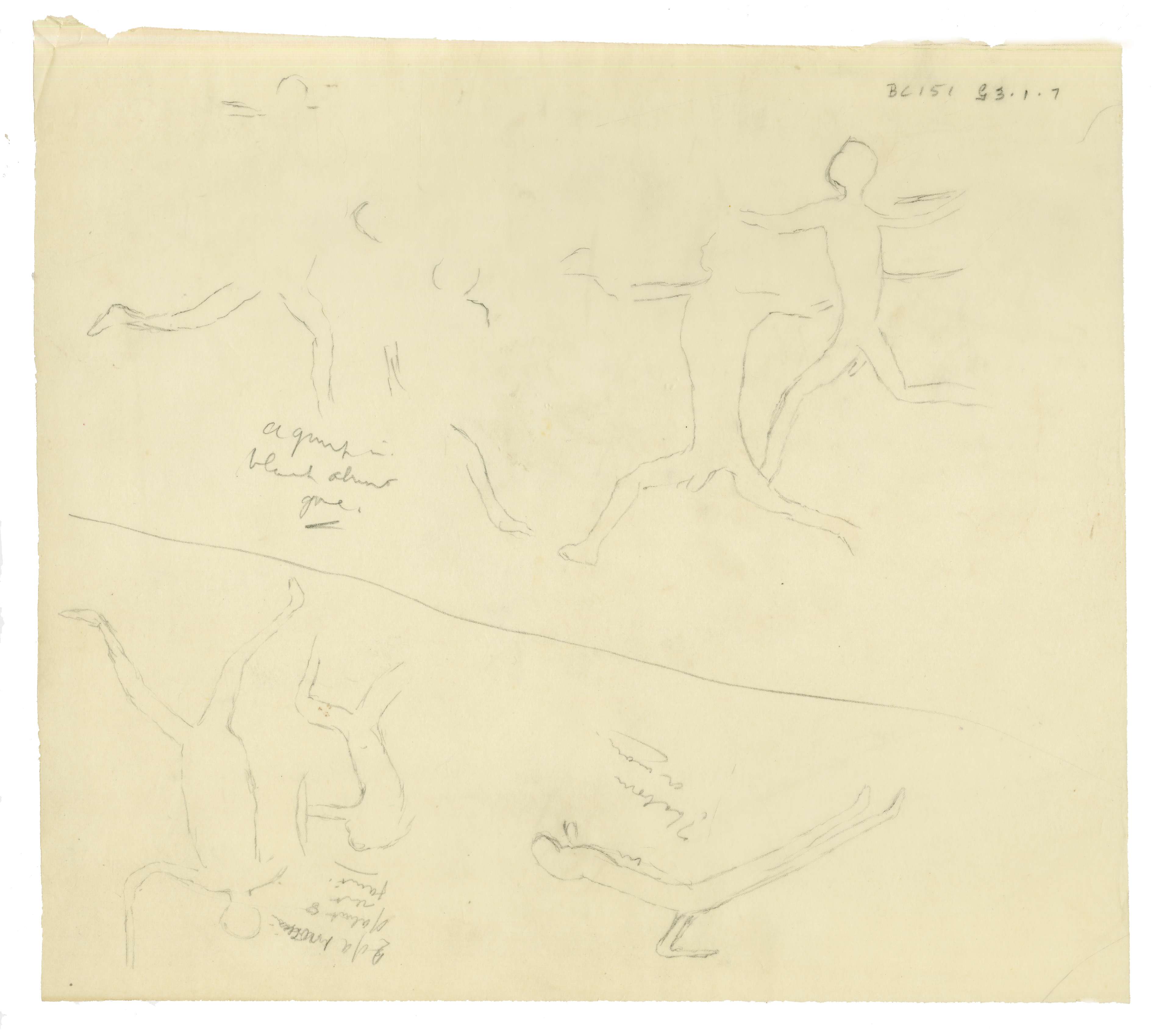 Bushman drawings, Gowa, rock art (tracings of), tracings, Croxley drawing book (sketchbook), sketchbook (with notes on colour)