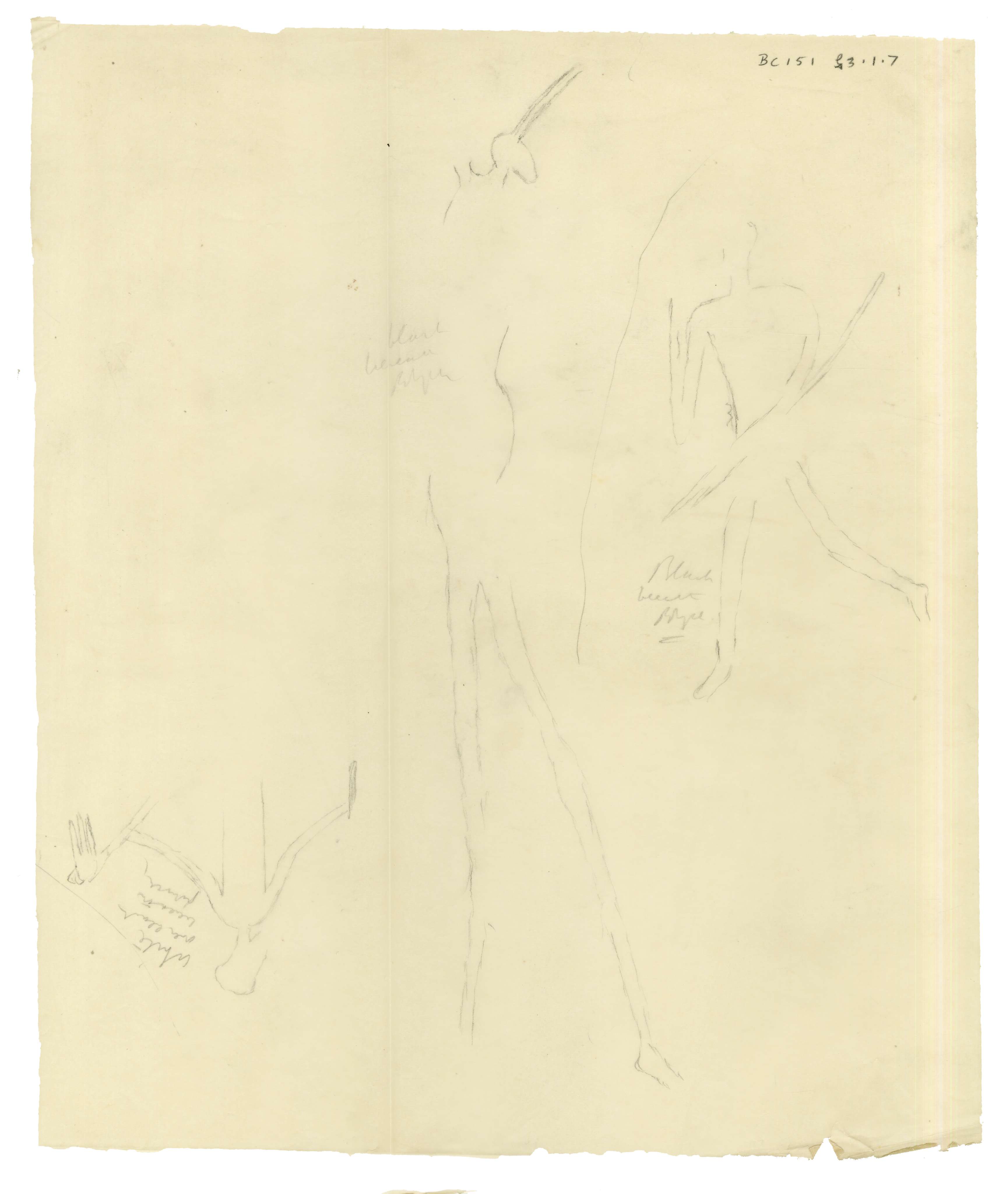 Bushman drawings, Gowa, rock art (tracings of), tracings, Croxley drawing book (sketchbook), sketchbook (with notes on colour)