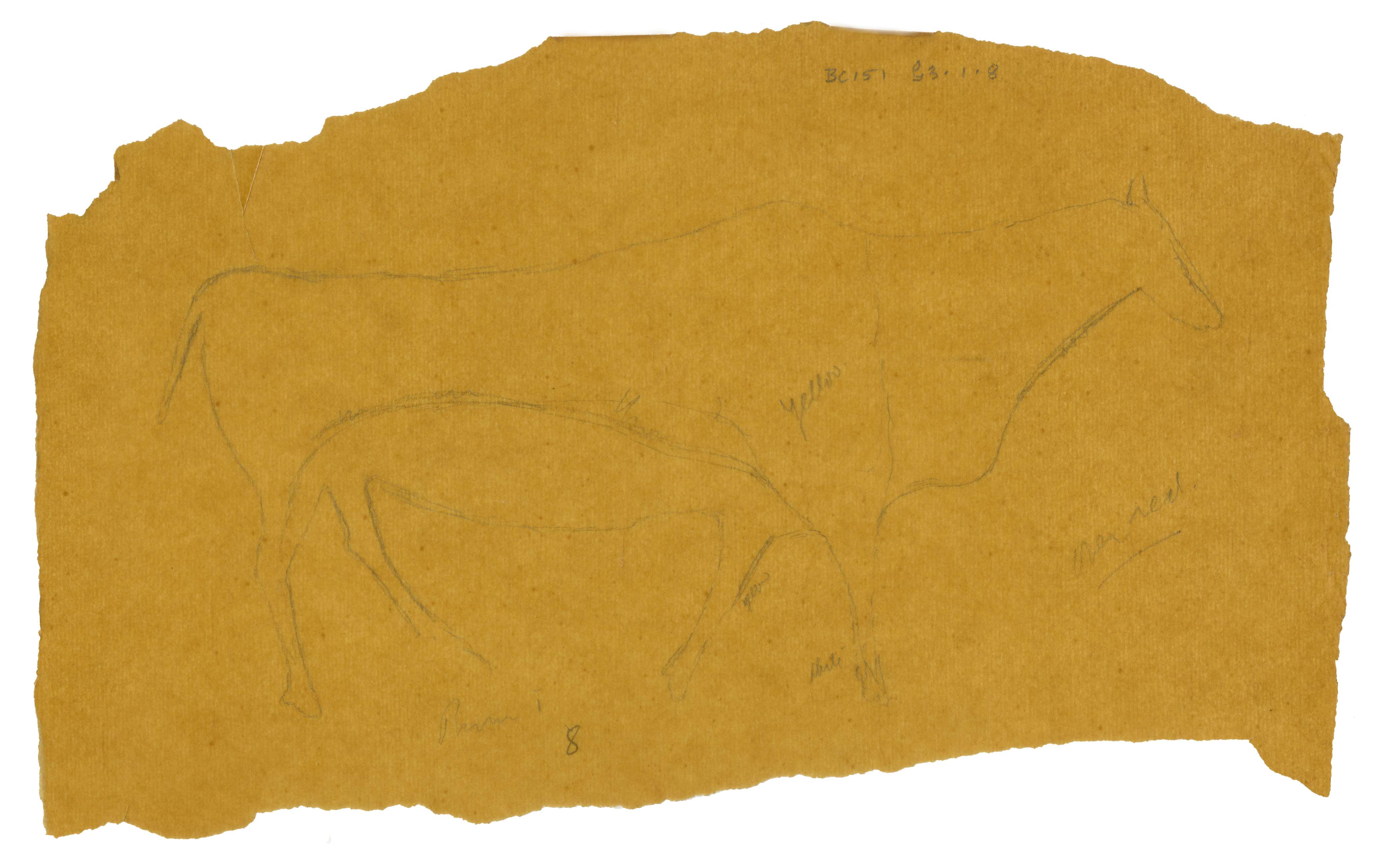 Rock art tracings (Bushman paintings in Transkei), Transkei (rock art from), Croxley drawing book (sketchbook), sketchbook (with notes on colour)