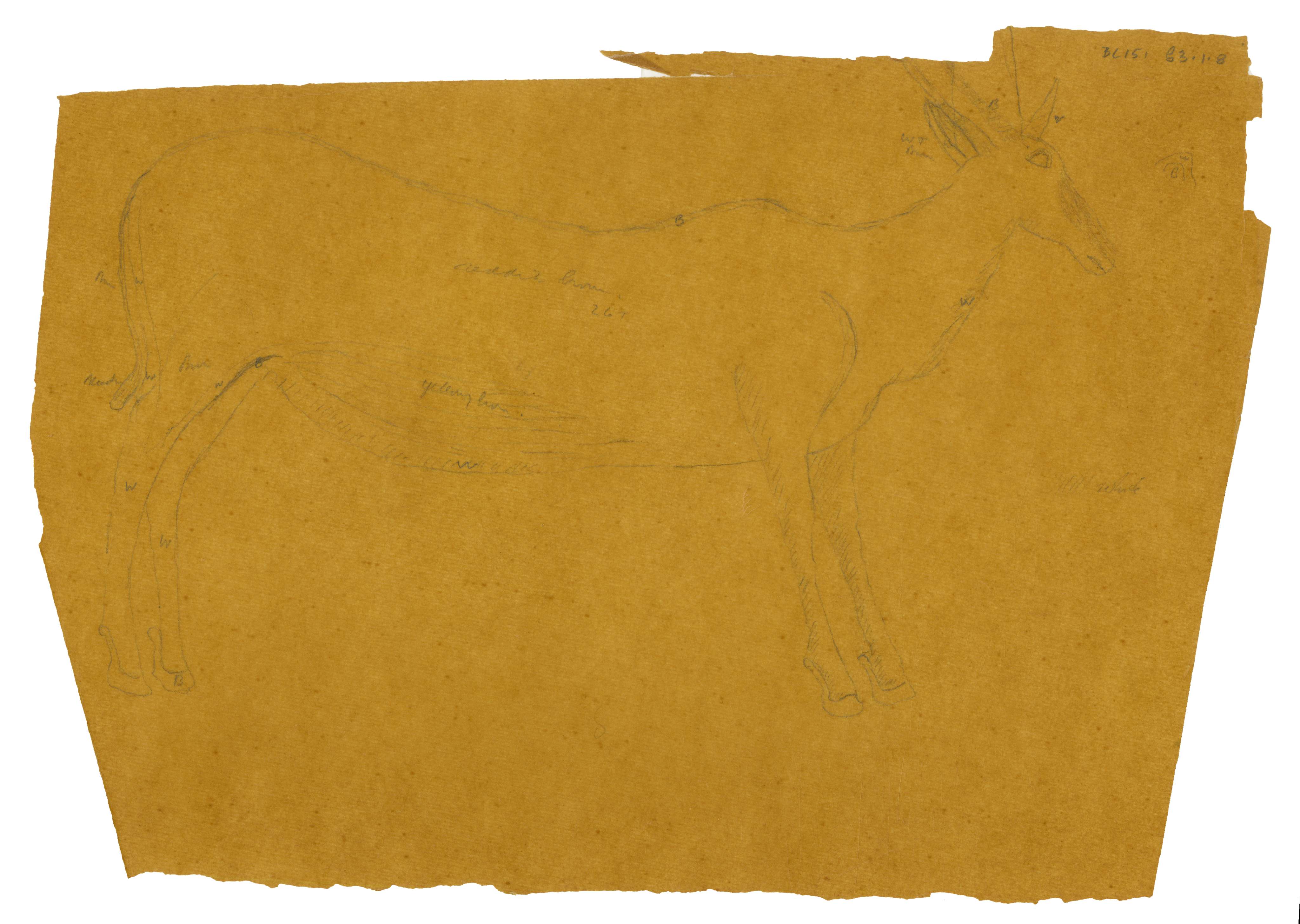 Rock art tracings (Bushman paintings in Transkei), Transkei (rock art from), Croxley drawing book (sketchbook), sketchbook (with notes on colour)