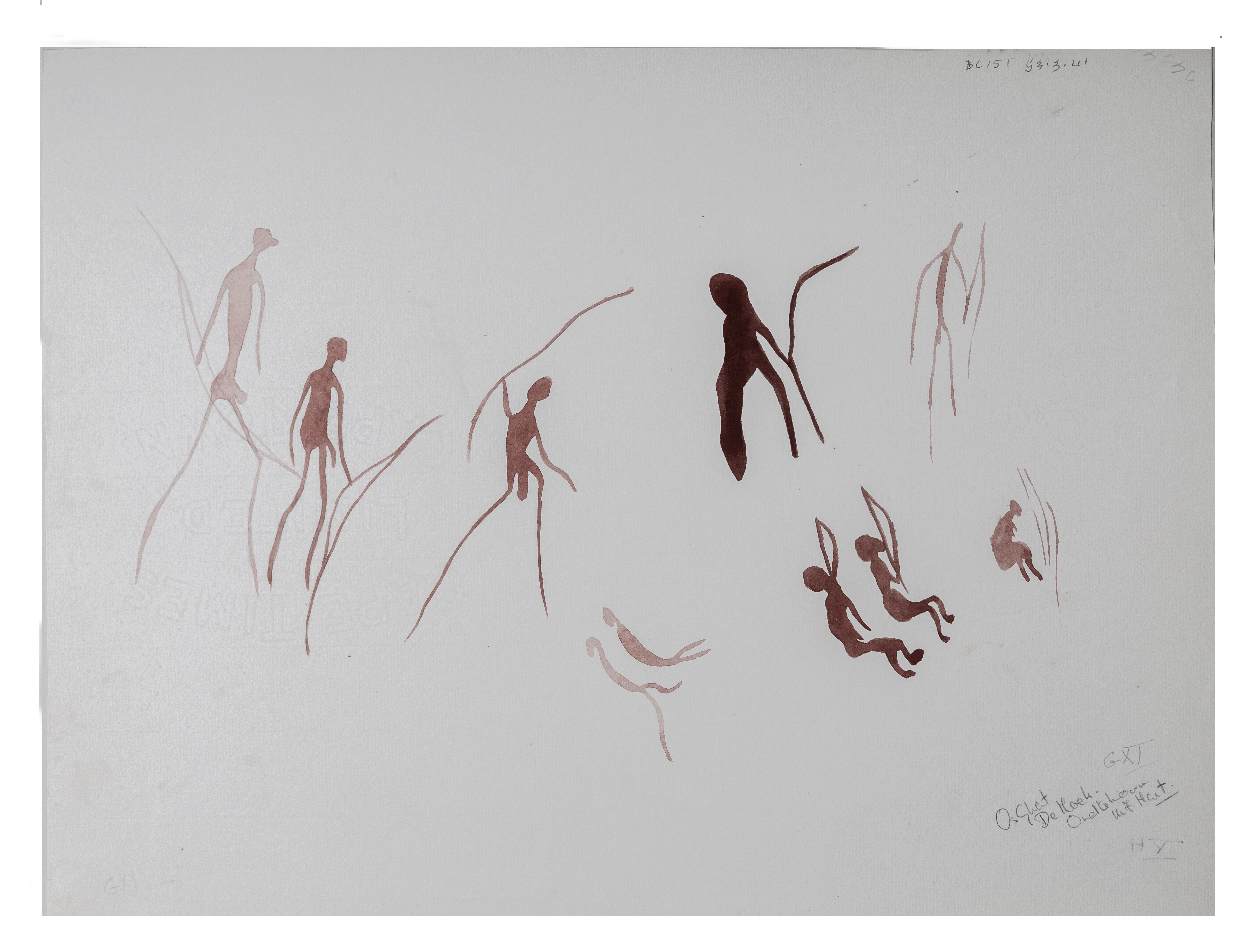Copy of rock art (G11), Os Gat, De Hoek, Oudtshoorn. The paper is watermarked 'CAPE TIMES LIMITED CAPE TOWN'.