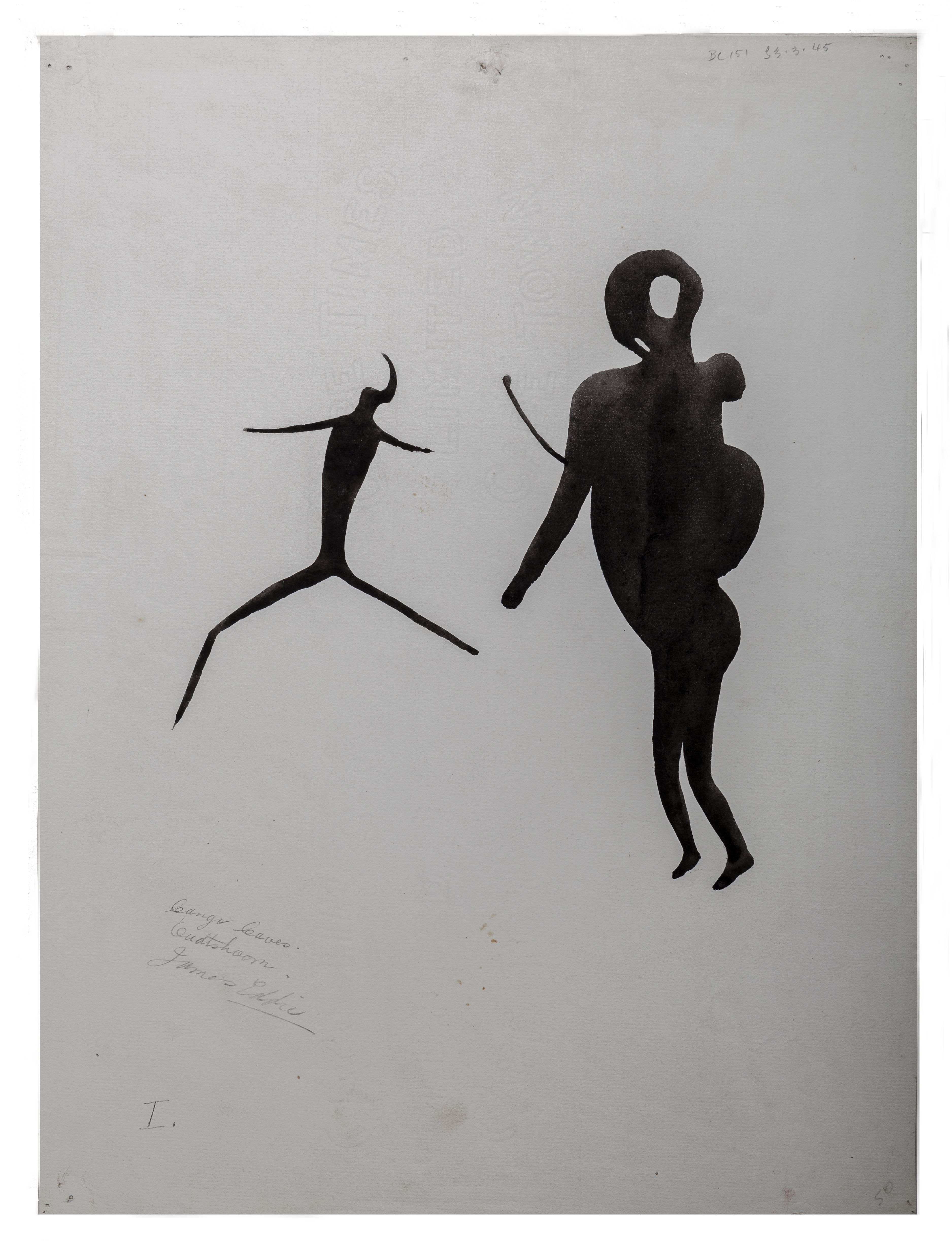 Copy of rock art (I), Cango Caves, Oudtshoorn. The paper is watermarked 'CAPE TIMES LIMITED CAPE TOWN'.