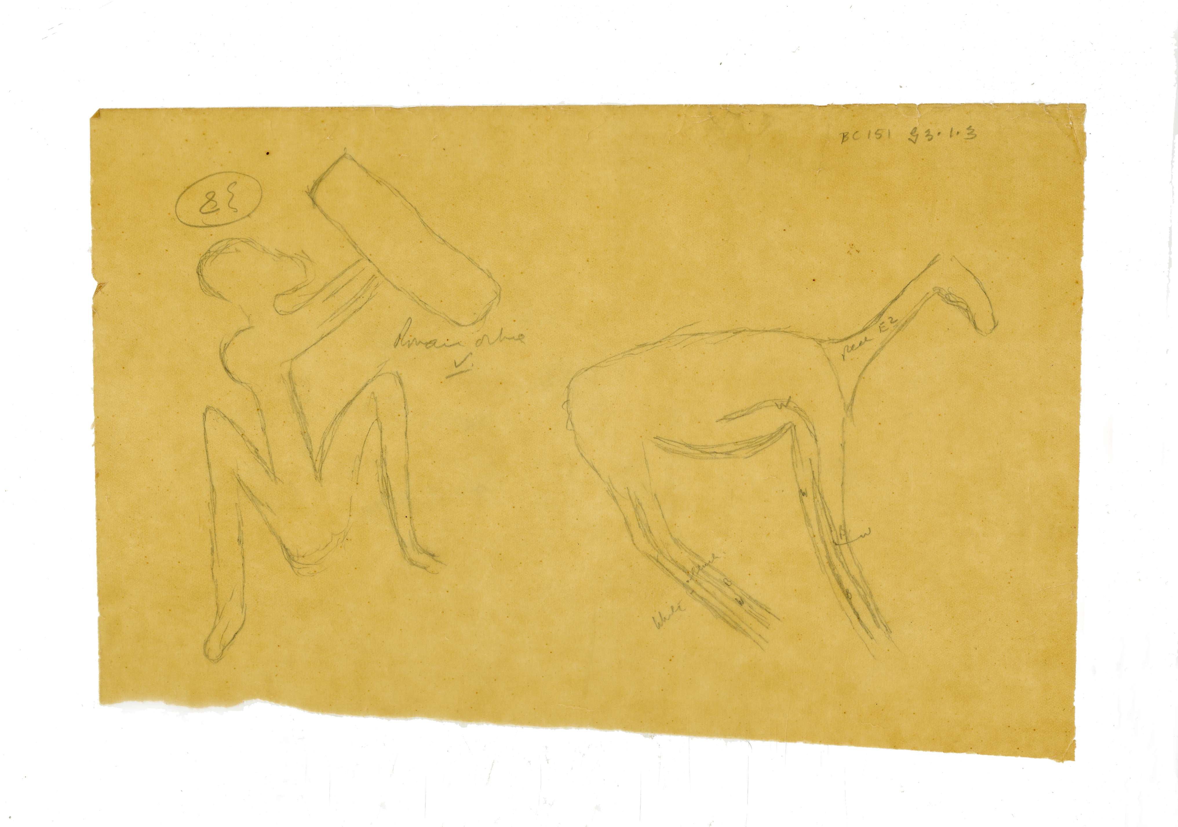 Bushman drawings, Egoso, rock art (tracings of), Croxley drawing book (sketchbook), sketchbook (with notes on colour)