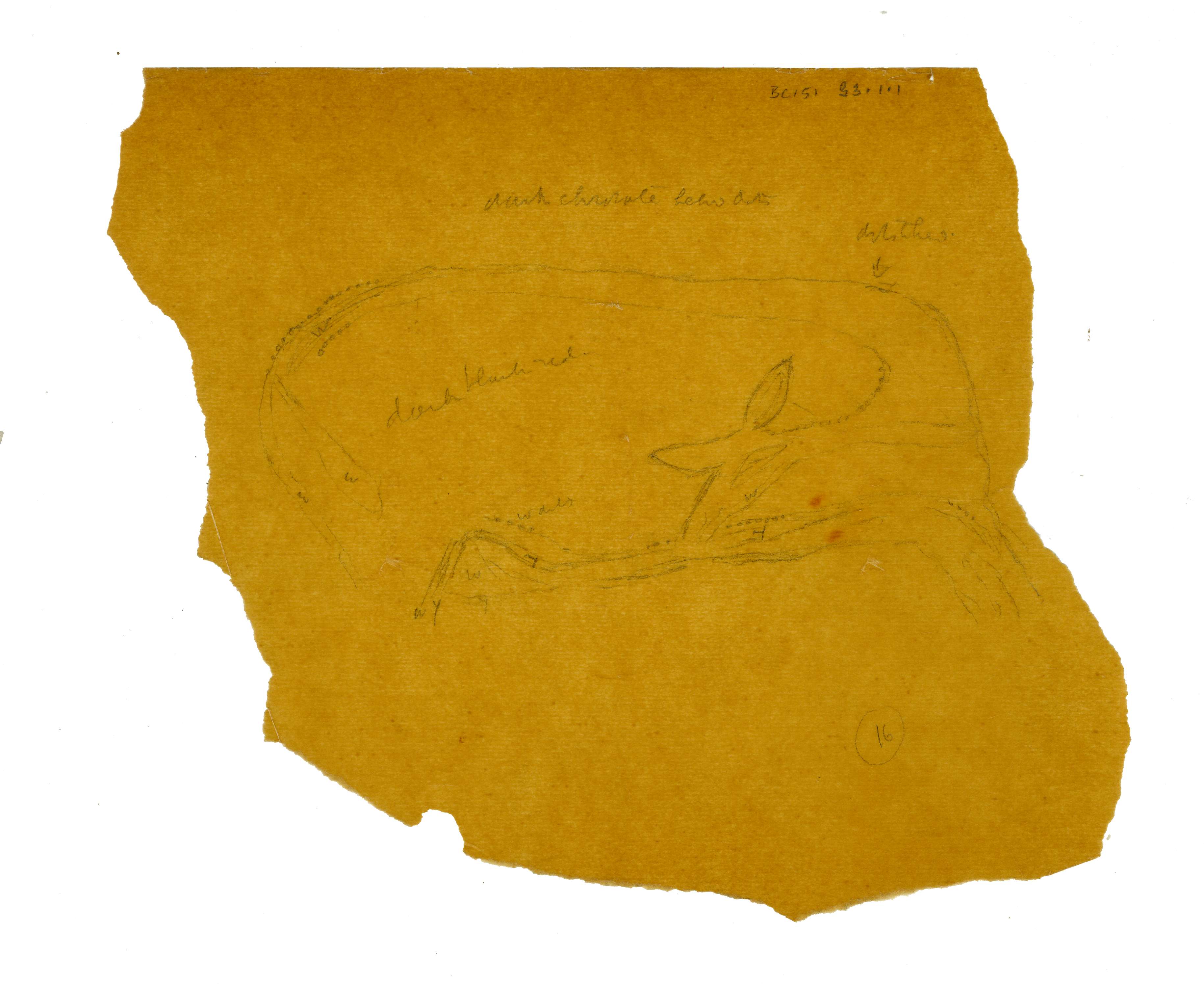 Bushman drawings, Mgwayana, Rutuli, rock art (tracings of), Croxley drawing book (sketchbook), sketchbook (with notes on colour)