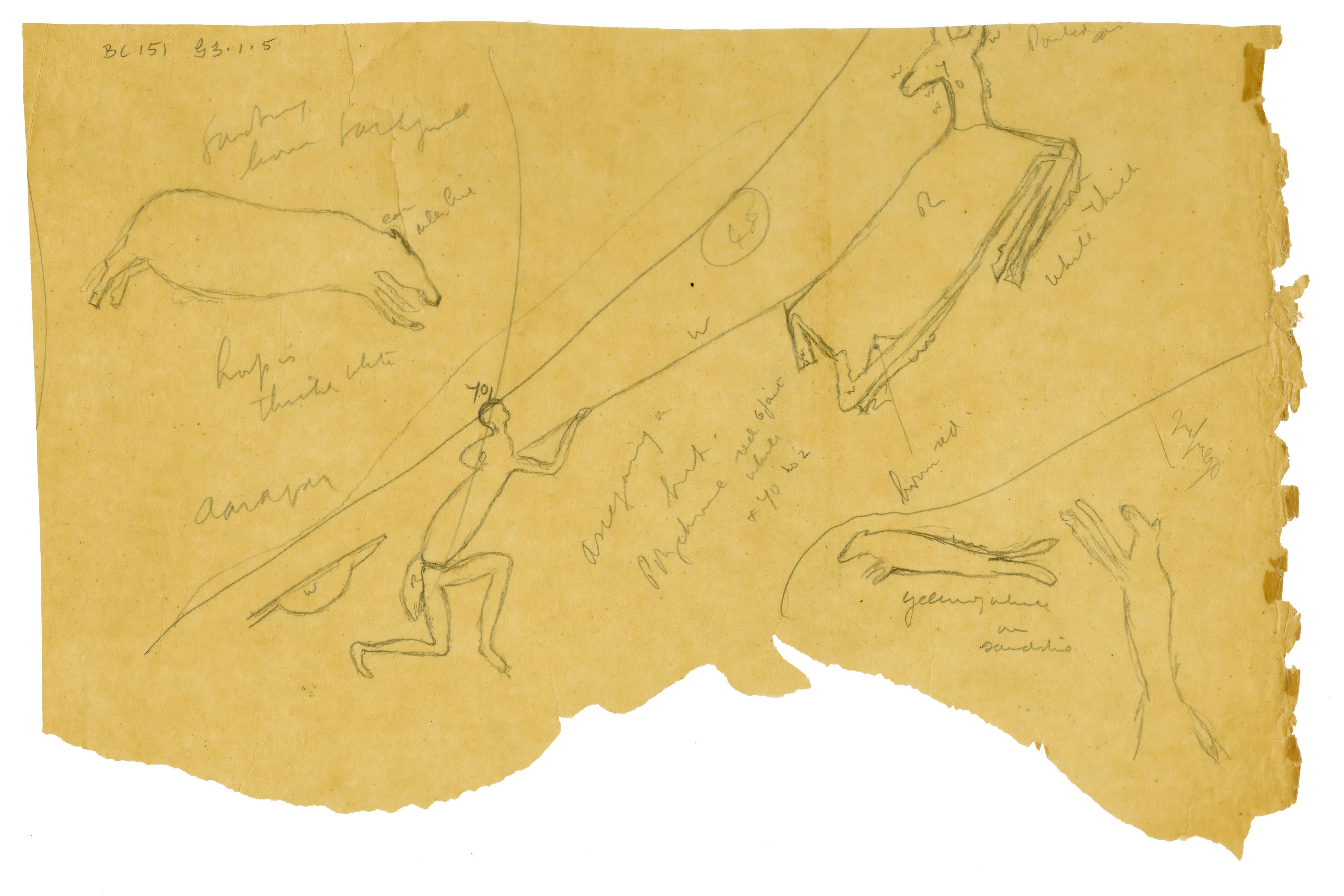 Bushman drawings, Aliwal North Area, rock art (tracings of), tracings, Croxley drawing book (sketchbook), sketchbook (with notes on colour)