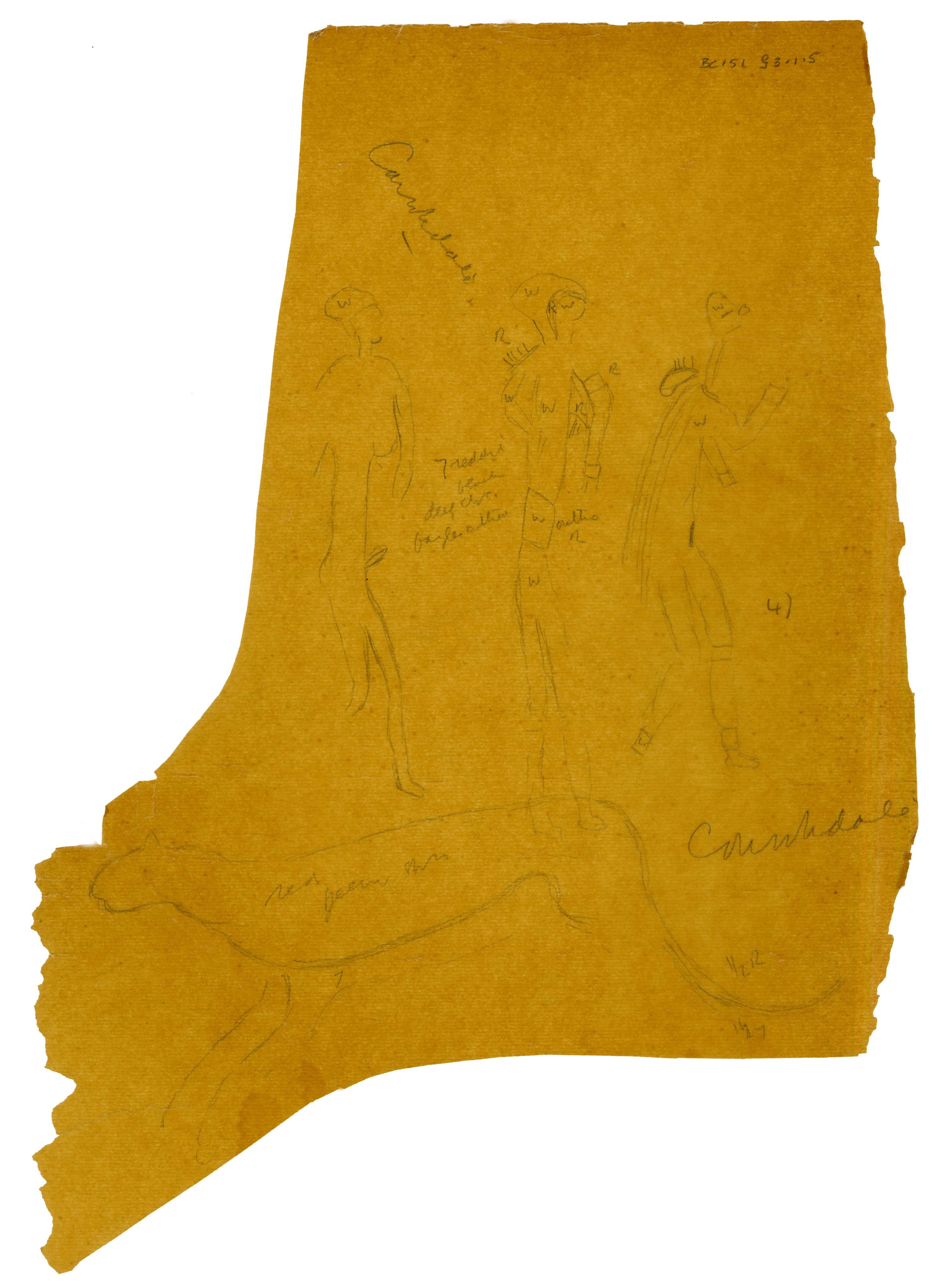 Bushman drawings, Aliwal North Area, rock art (tracings of), tracings, Croxley drawing book (sketchbook), sketchbook (with notes on colour)
