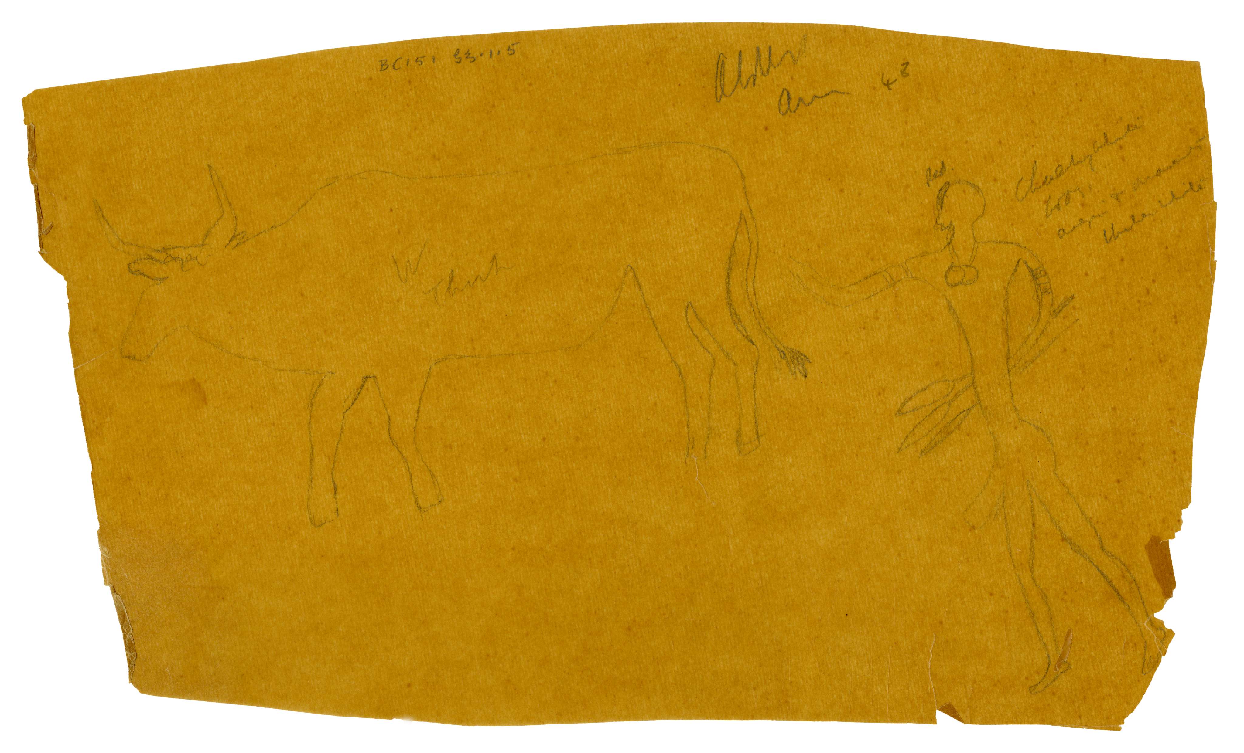 Bushman drawings, Aliwal North Area, rock art (tracings of), tracings, Croxley drawing book (sketchbook), sketchbook (with notes on colour)
