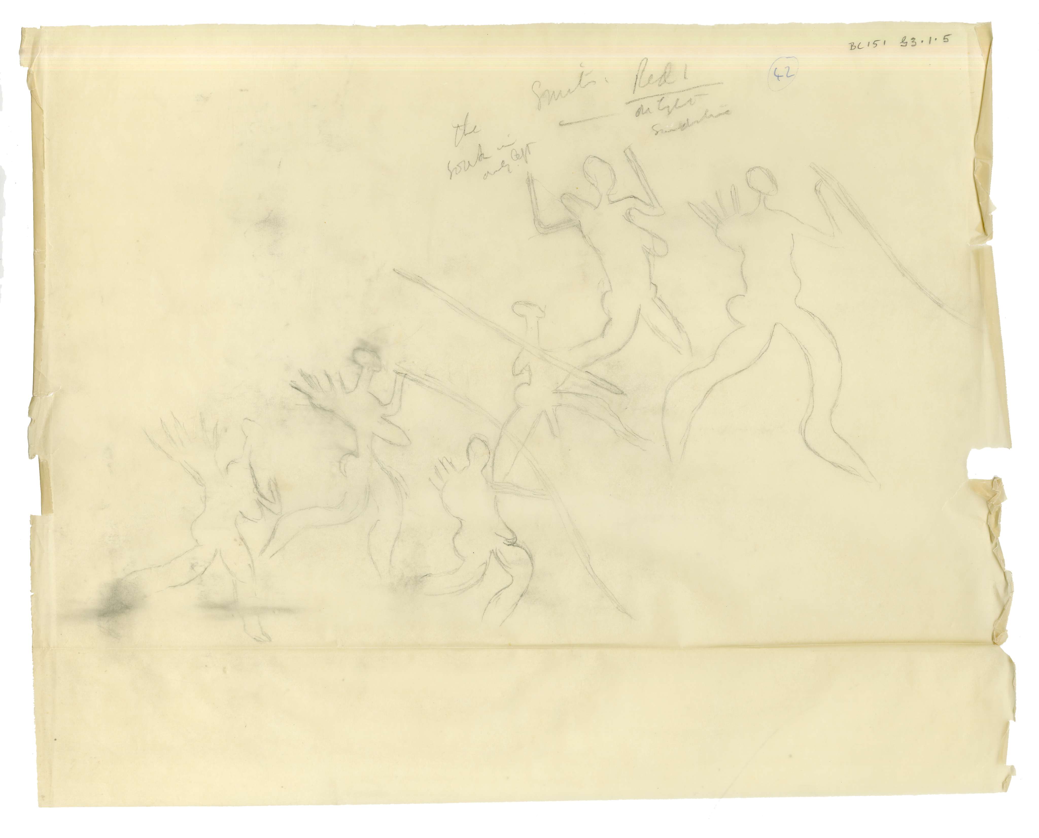 Bushman drawings, Aliwal North Area, rock art (tracings of), tracings, Croxley drawing book (sketchbook), sketchbook (with notes on colour)