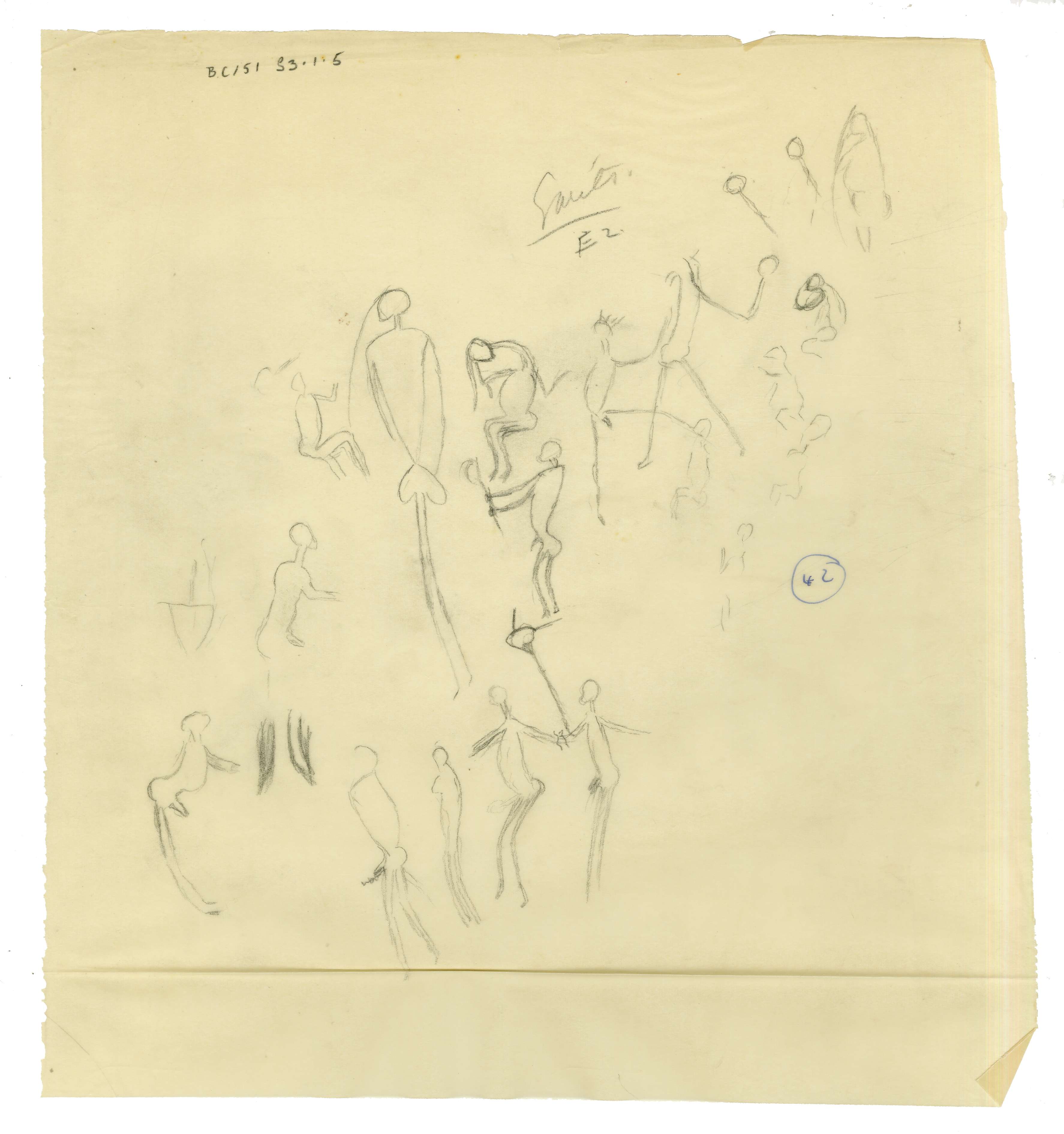 Bushman drawings, Aliwal North Area, rock art (tracings of), tracings, Croxley drawing book (sketchbook), sketchbook (with notes on colour)