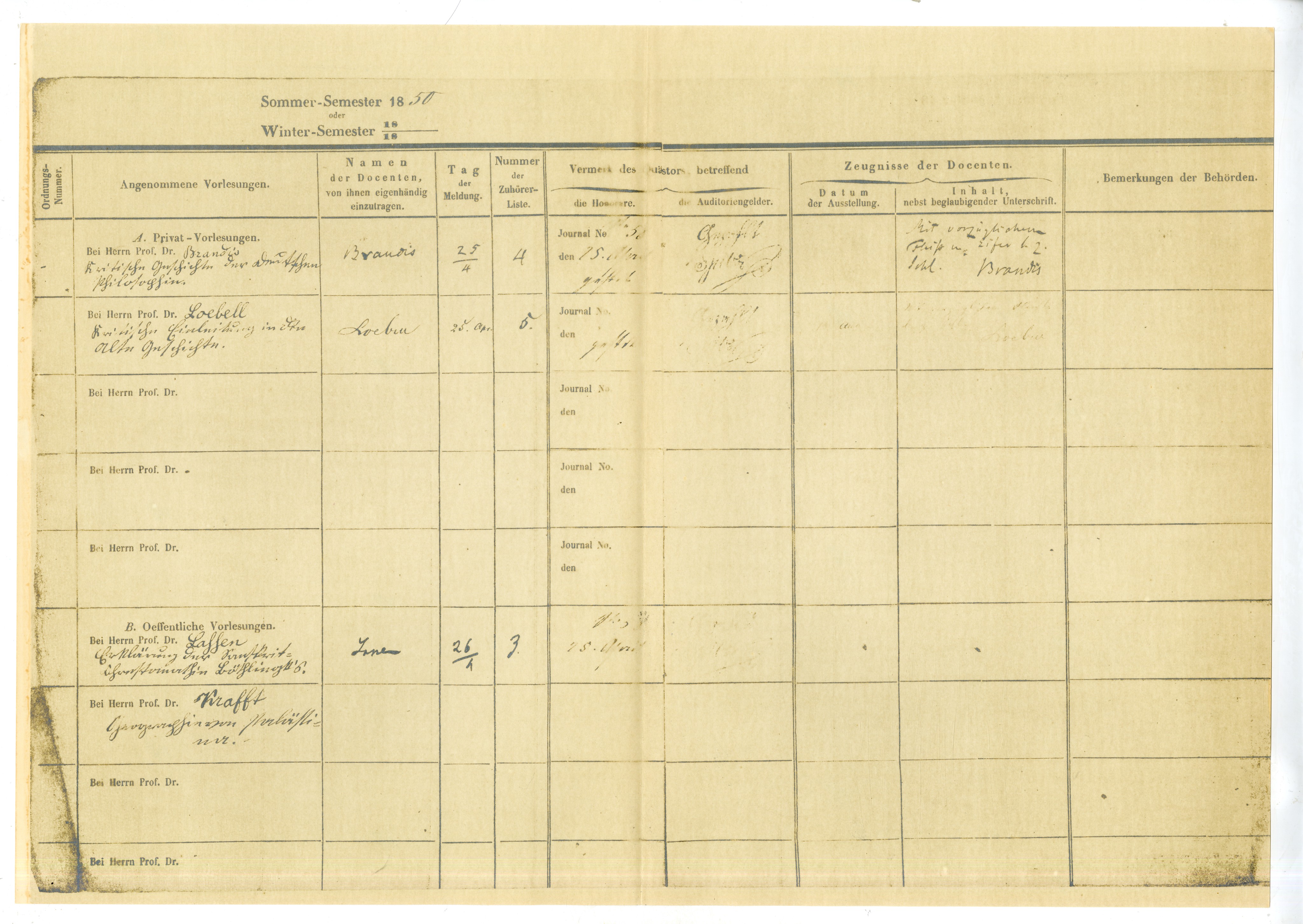 WHI Bleek's registration book [Anmeldungs-Buch ('Winter-Semester', 1850)]