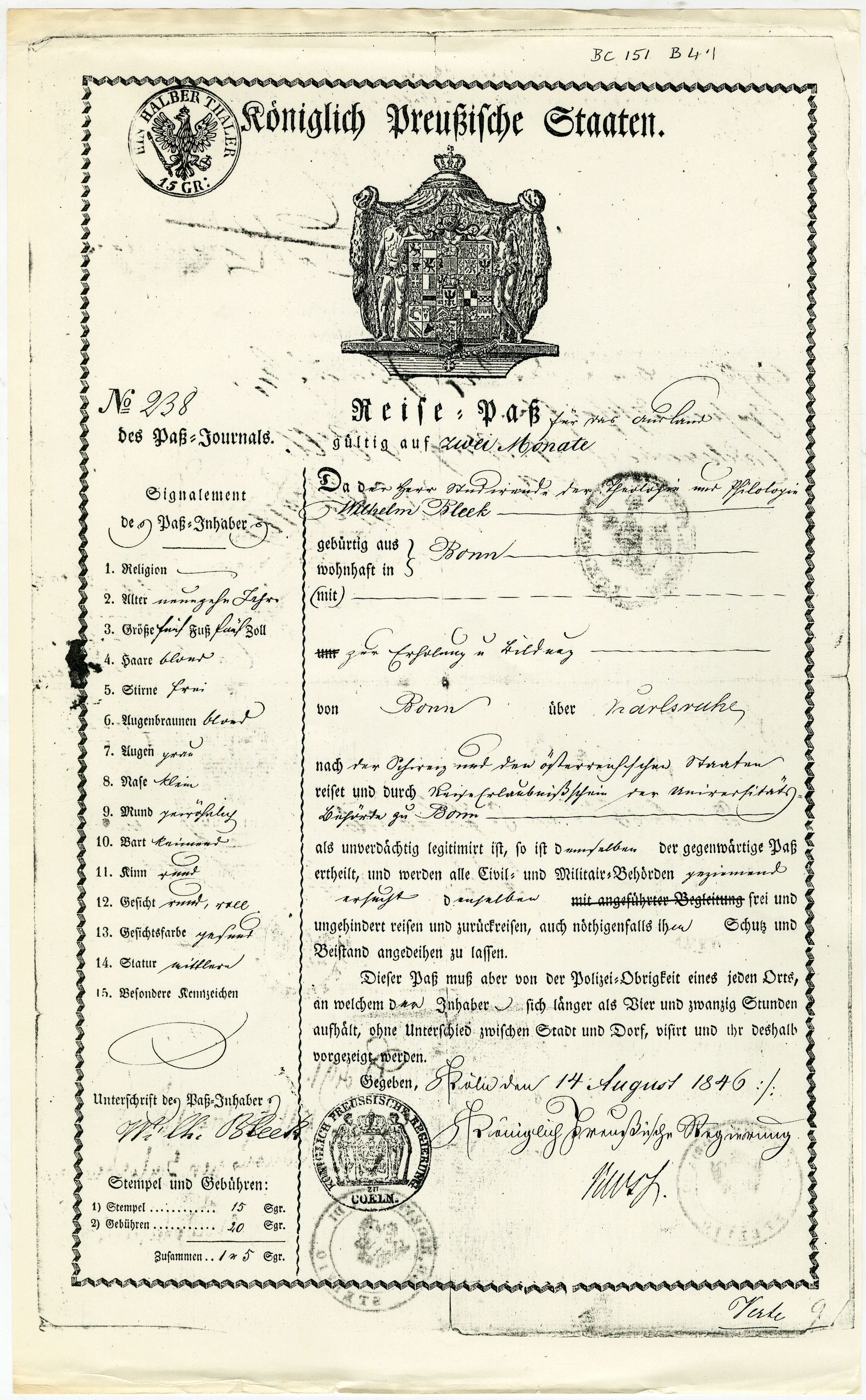 Royal Prussian States (Königlich Preußische Staaten), travel pass (Reise-Paß)