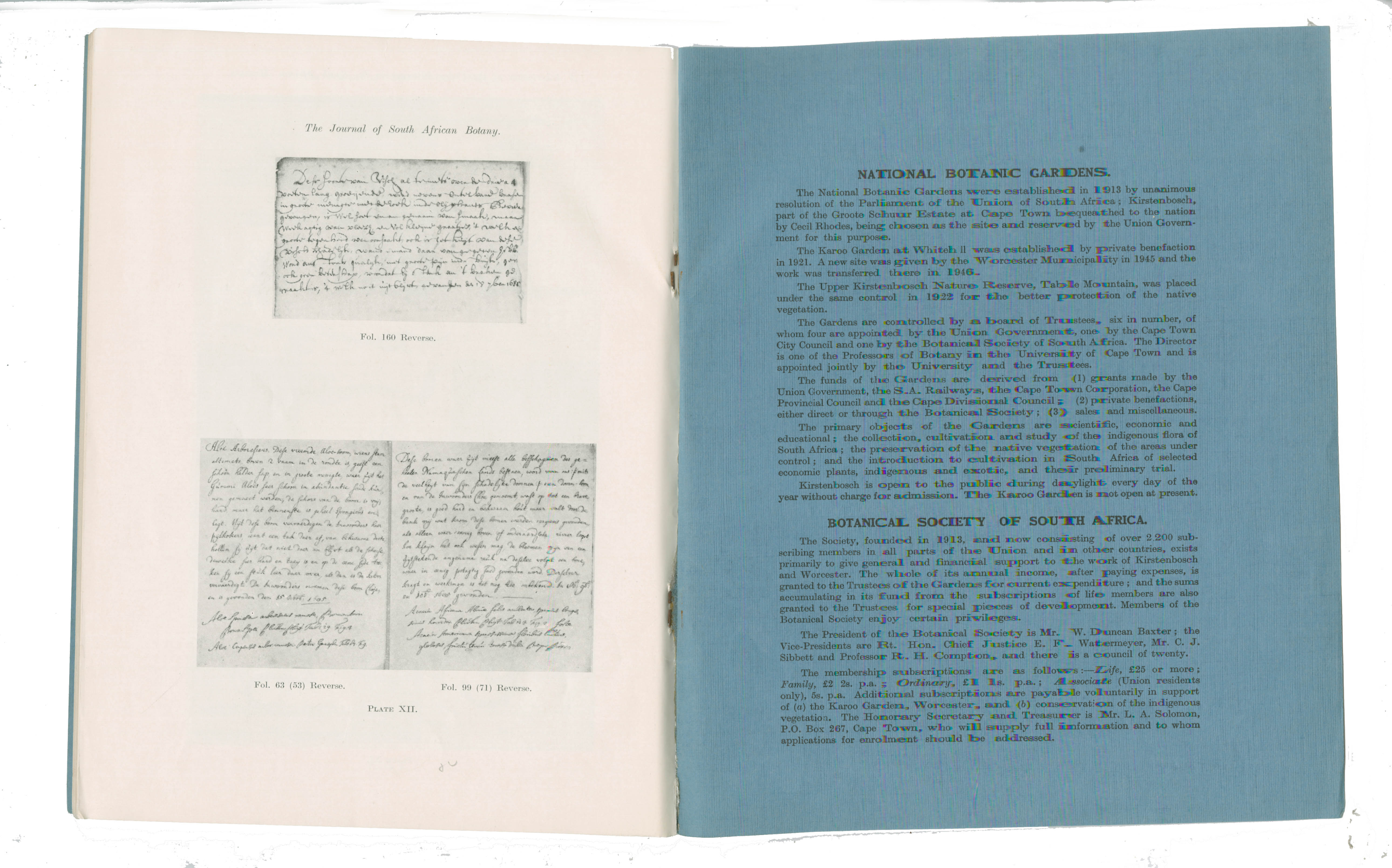 A brief history of the National Botanic Gardens [in The journal of South African botany]