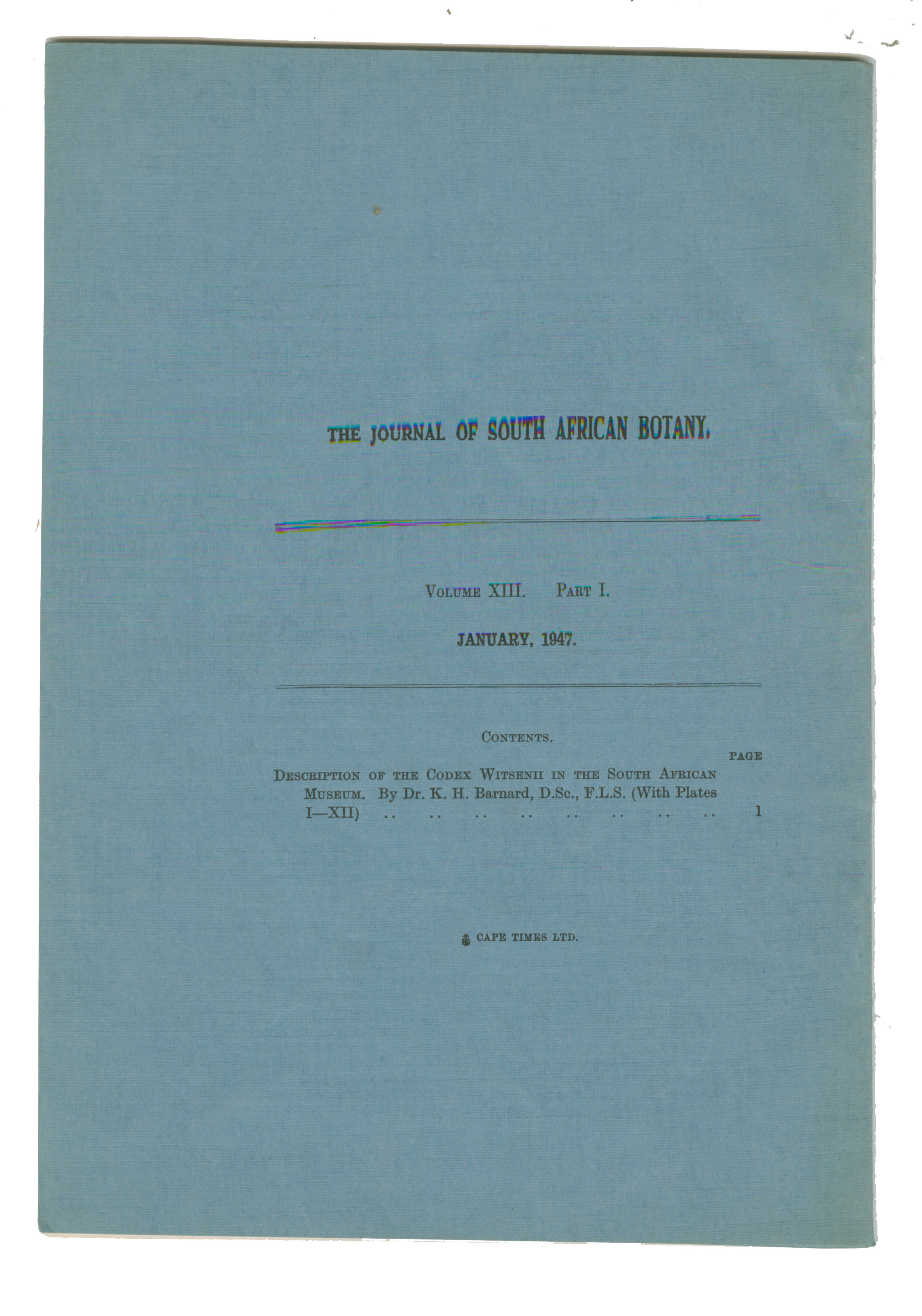 A description of the codex Witsenii in the South African Museum, 'Journal of South African Botany', Volume XIII, part 1, January 1947 (Reprint).