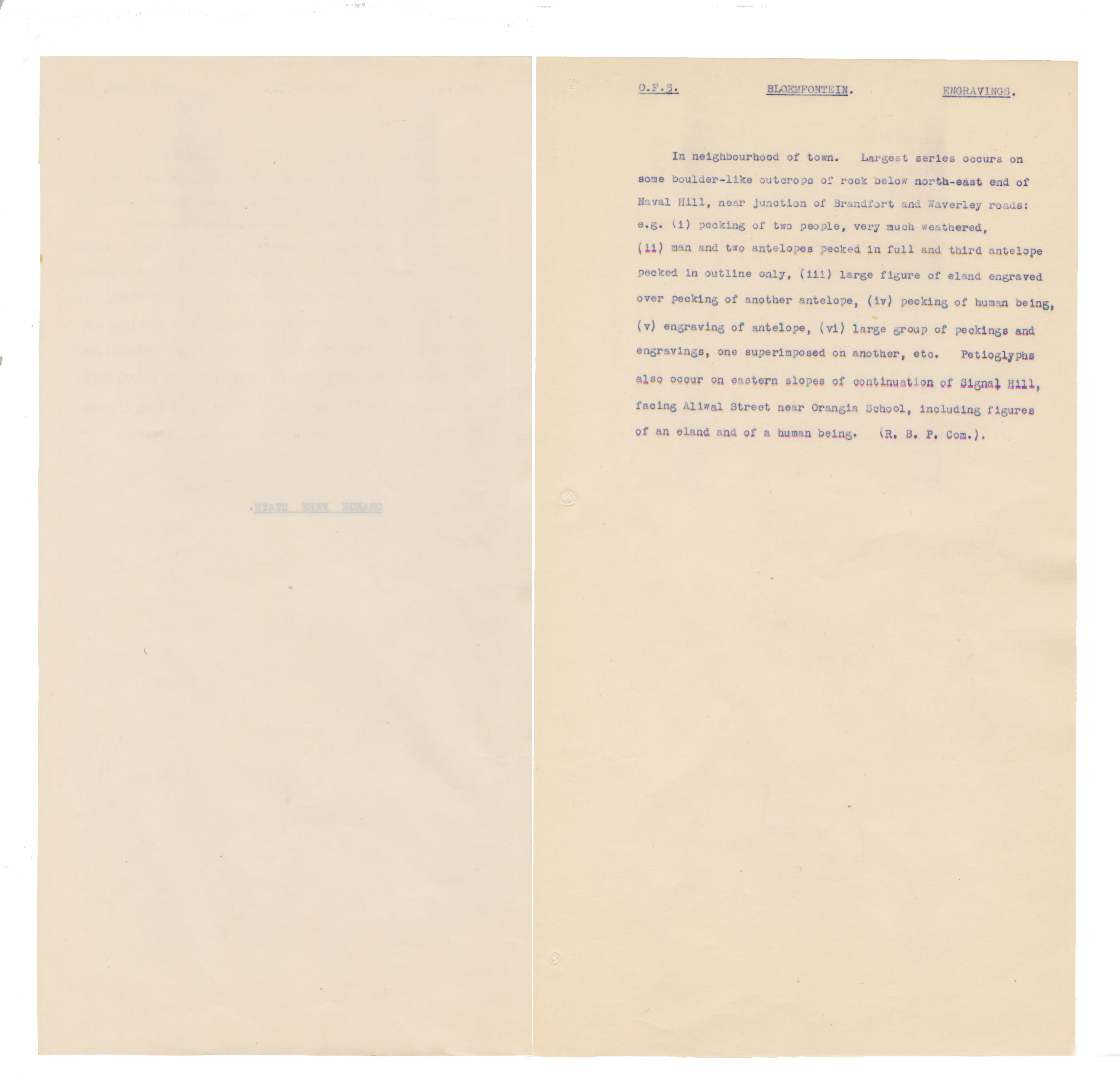 Typewritten notes (facsimiles?) on sheer paper about southern African rock engravings.