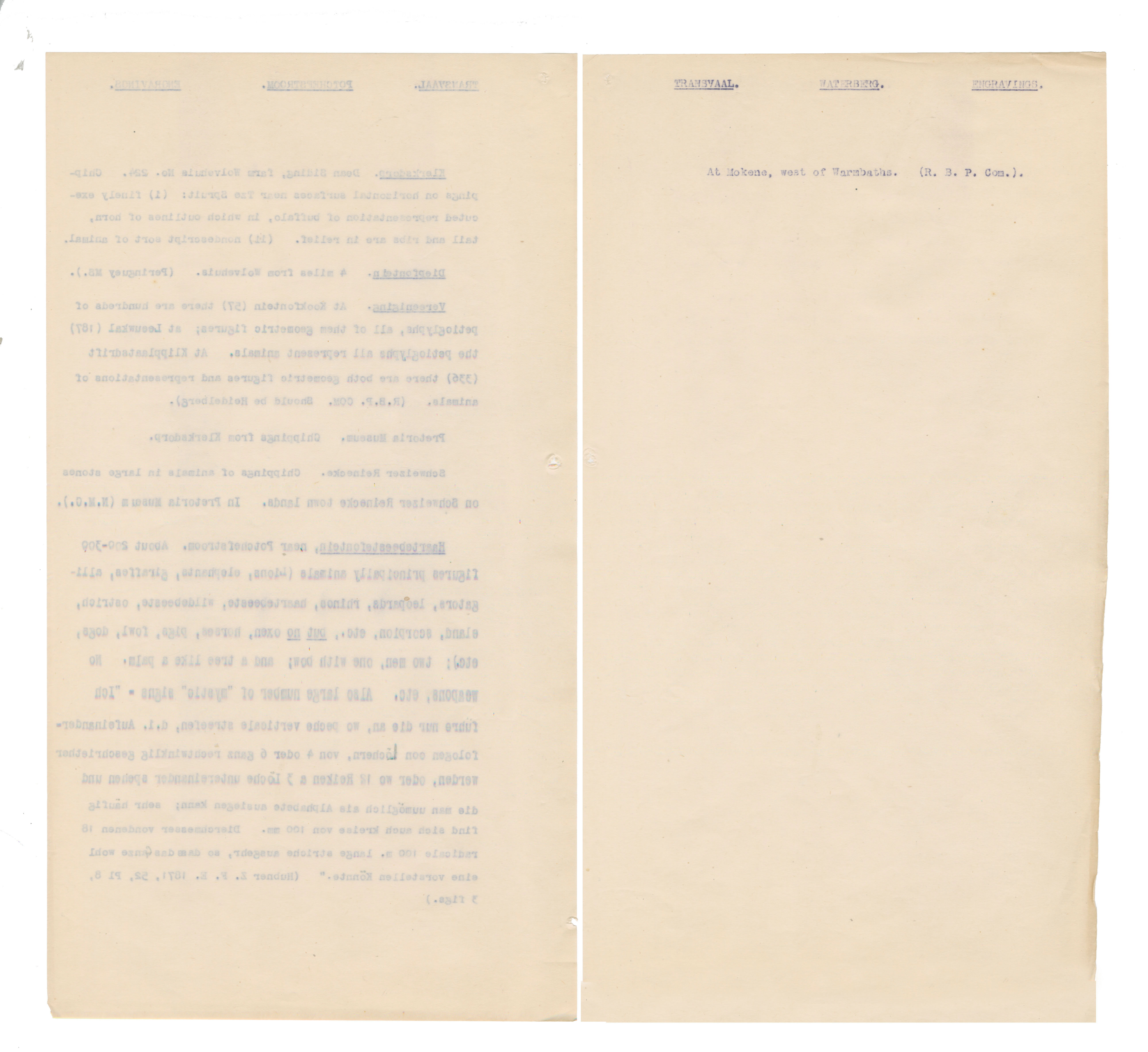 Typewritten notes (facsimiles?) on sheer paper about southern African rock engravings.