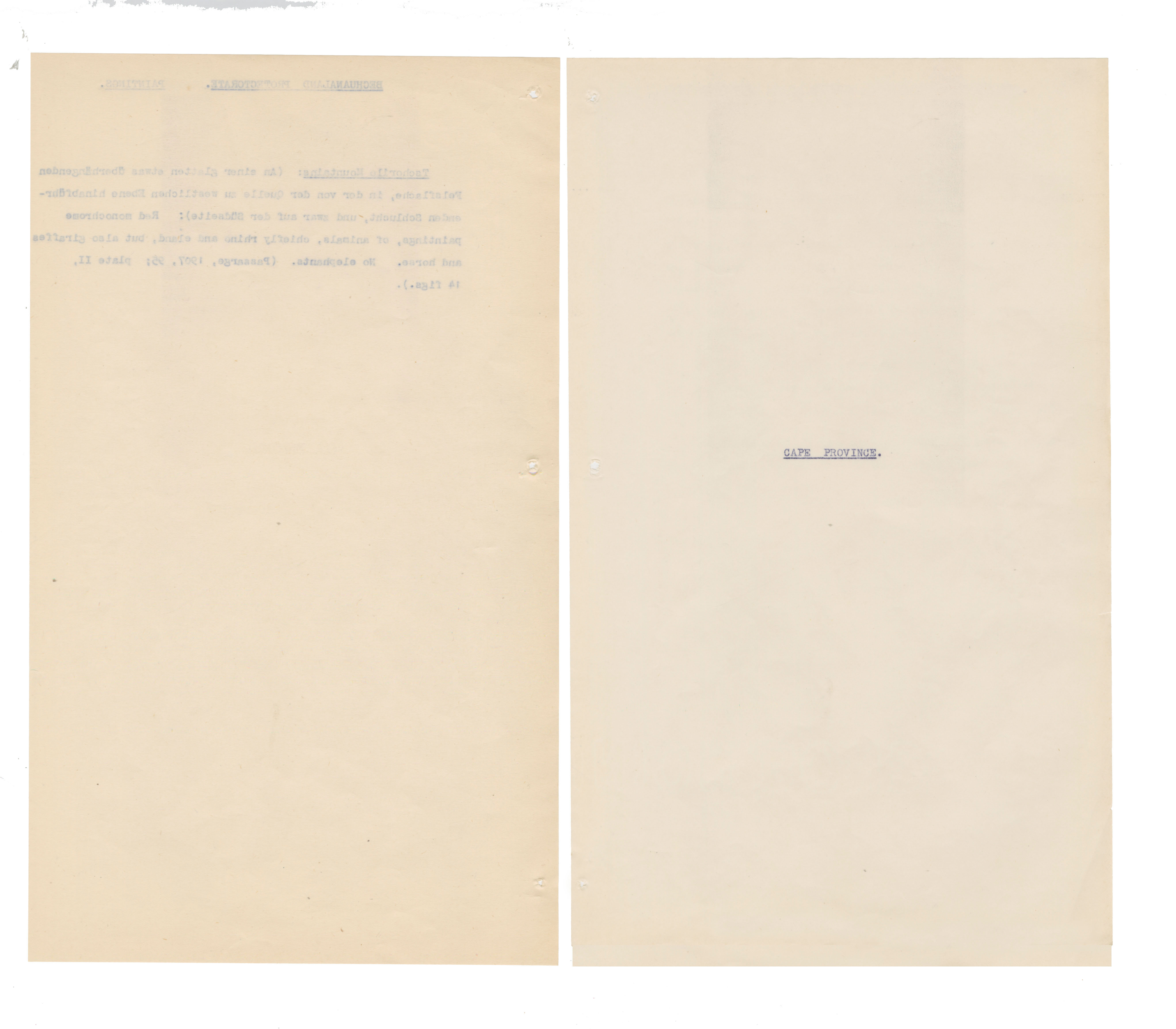 Typewritten notes (facsimiles?) on sheer paper about southern African rock engravings.