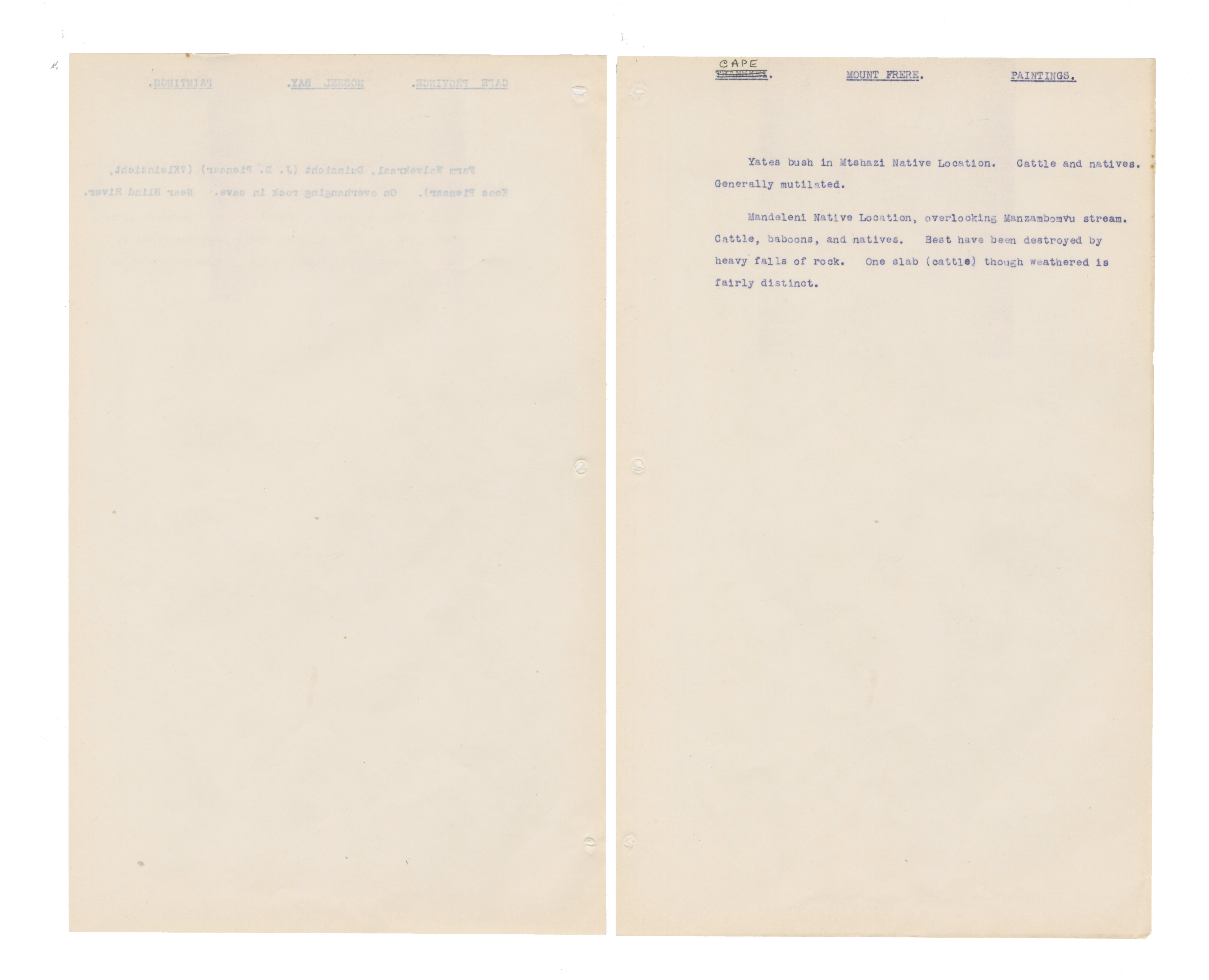 Typewritten notes (facsimiles?) on sheer paper about southern African rock engravings.