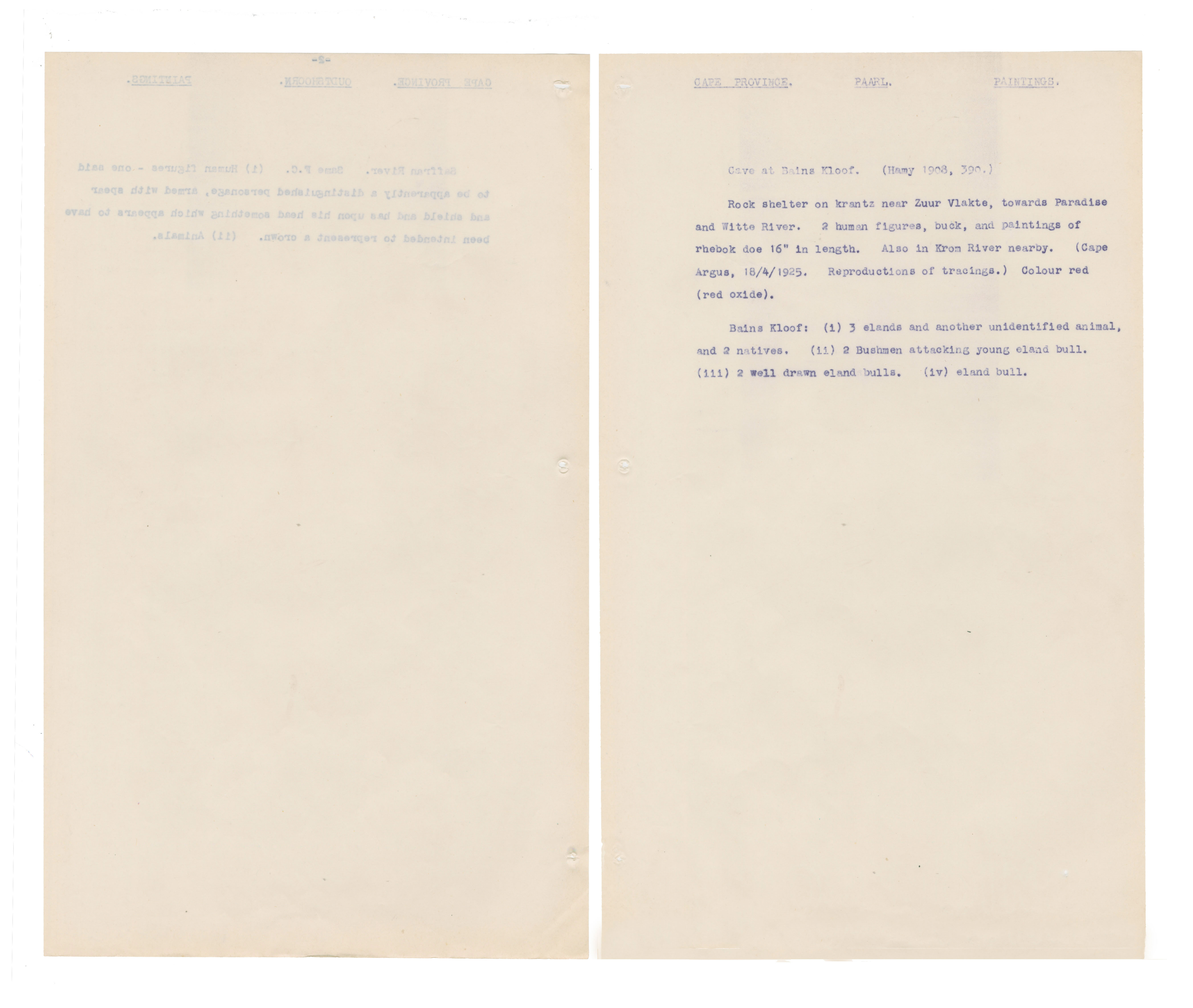 Typewritten notes (facsimiles?) on sheer paper about southern African rock engravings.