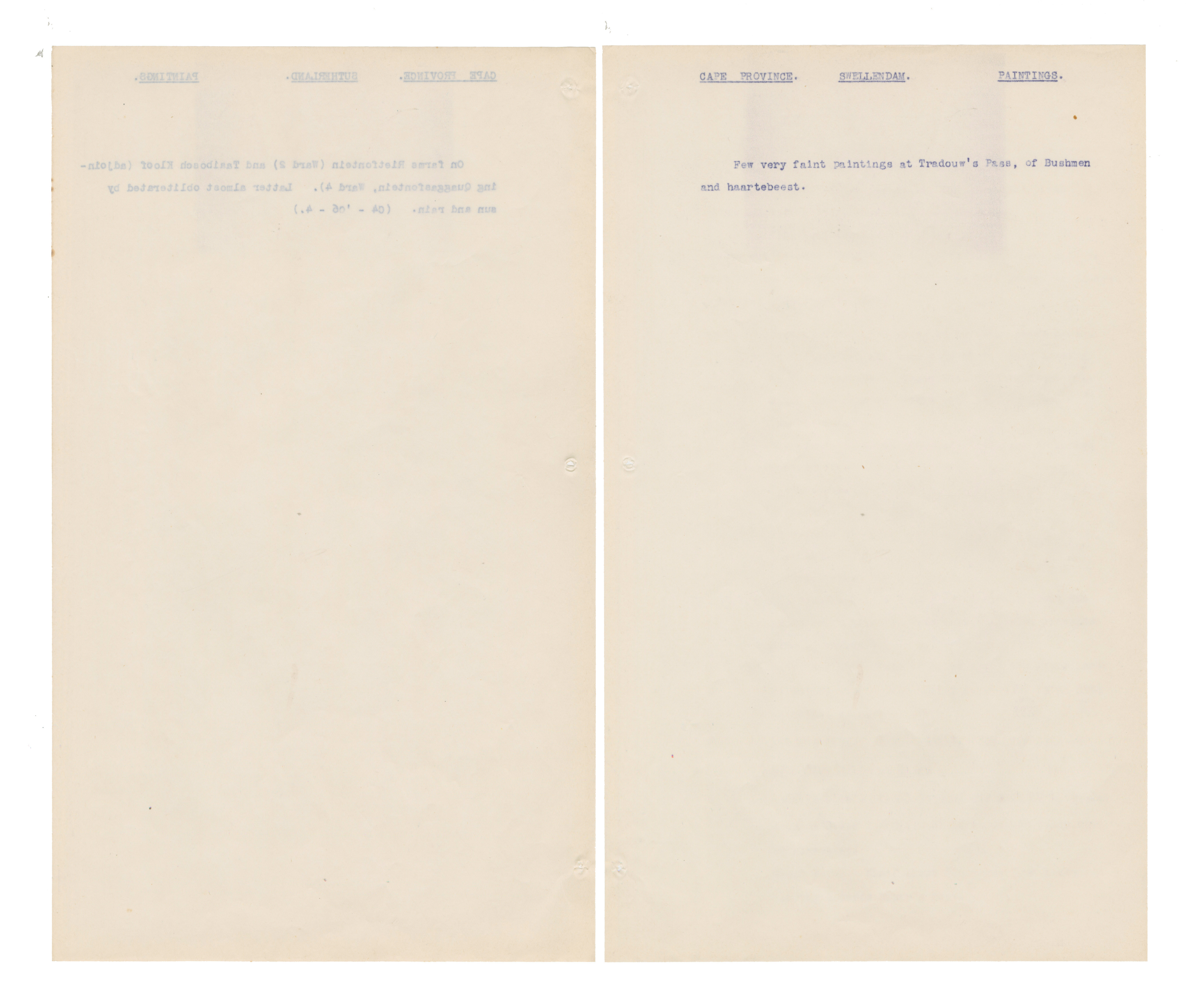 Typewritten notes (facsimiles?) on sheer paper about southern African rock engravings.