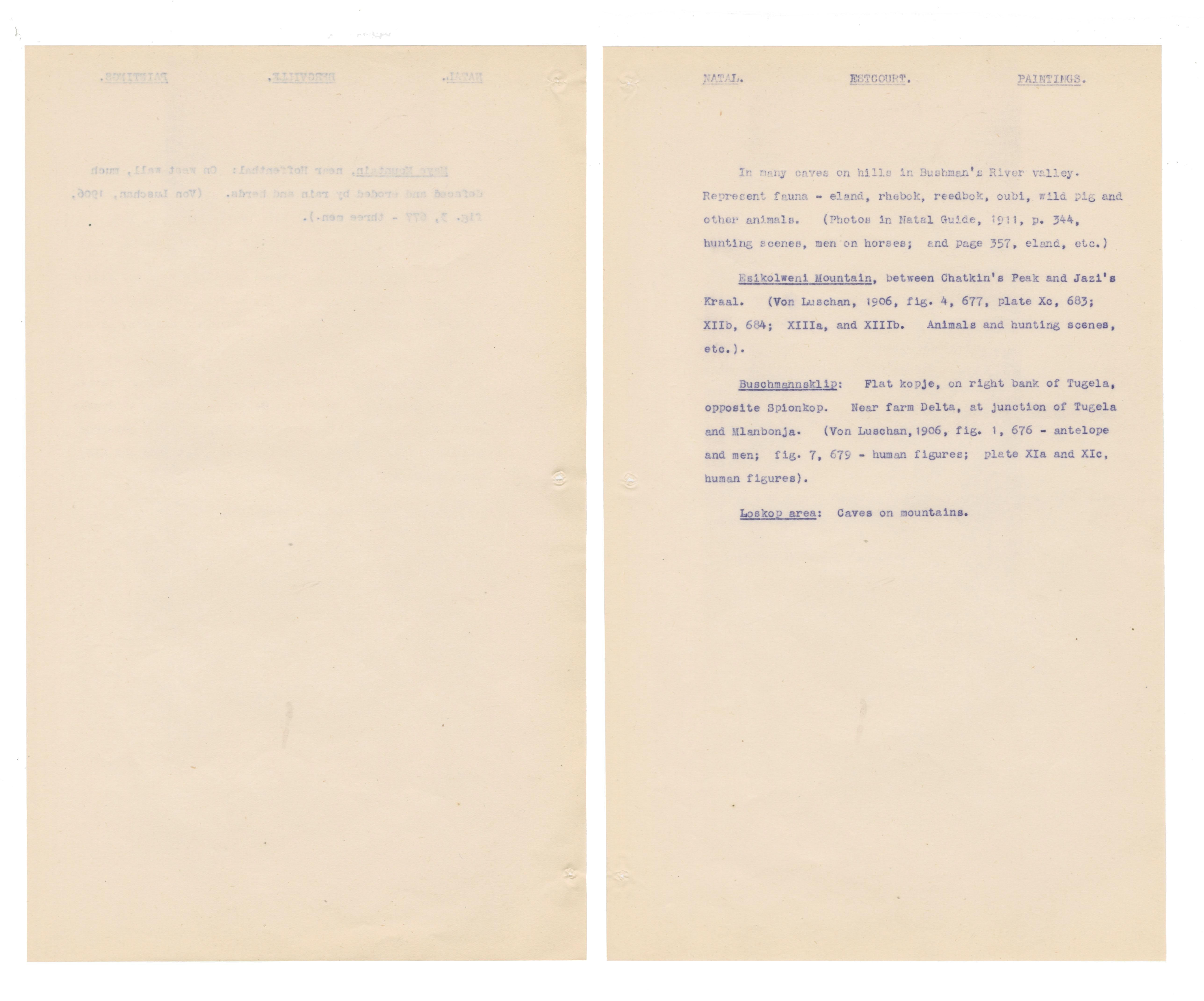 Typewritten notes (facsimiles?) on sheer paper about southern African rock engravings.