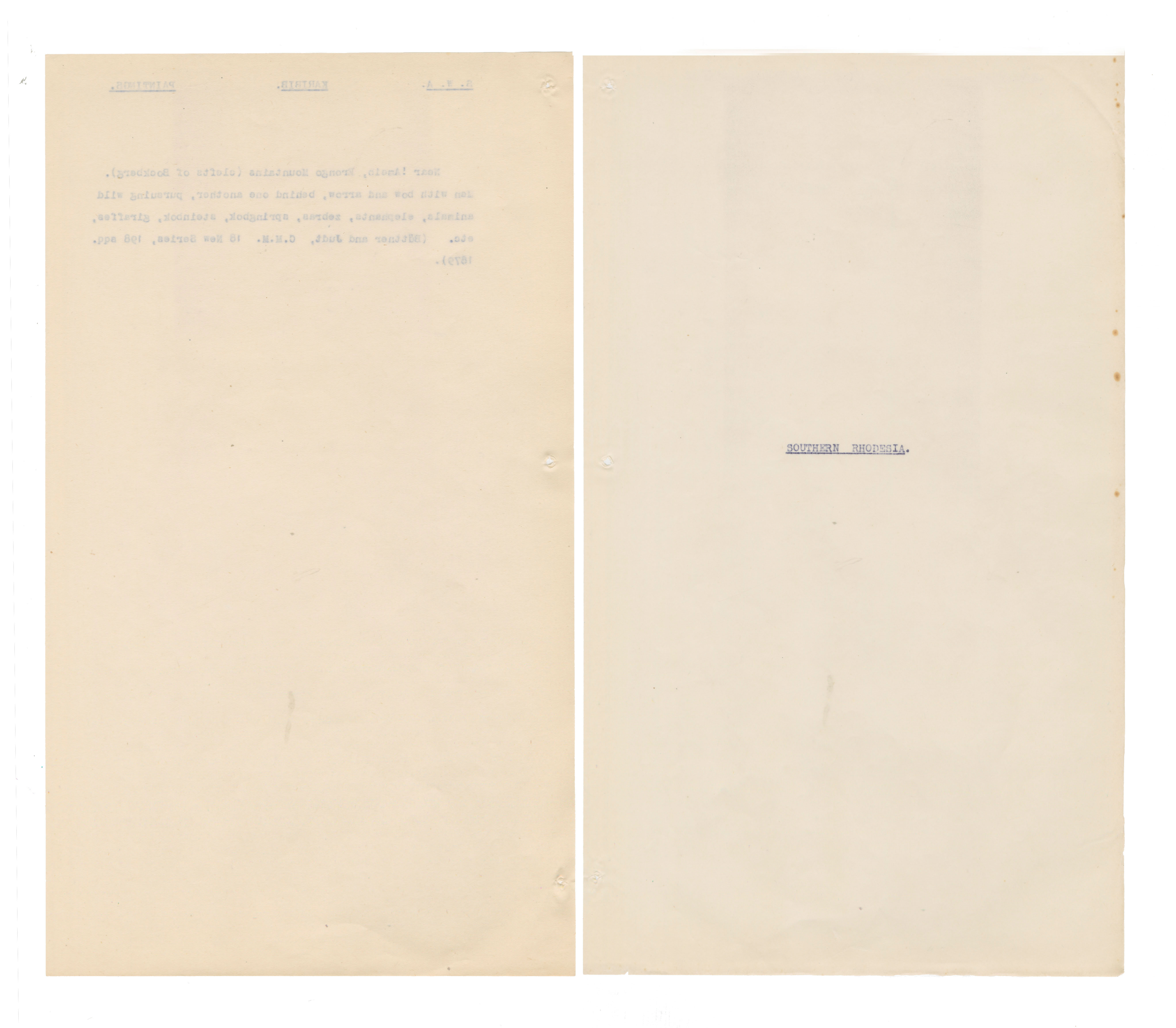 Typewritten notes (facsimiles?) on sheer paper about southern African rock engravings.