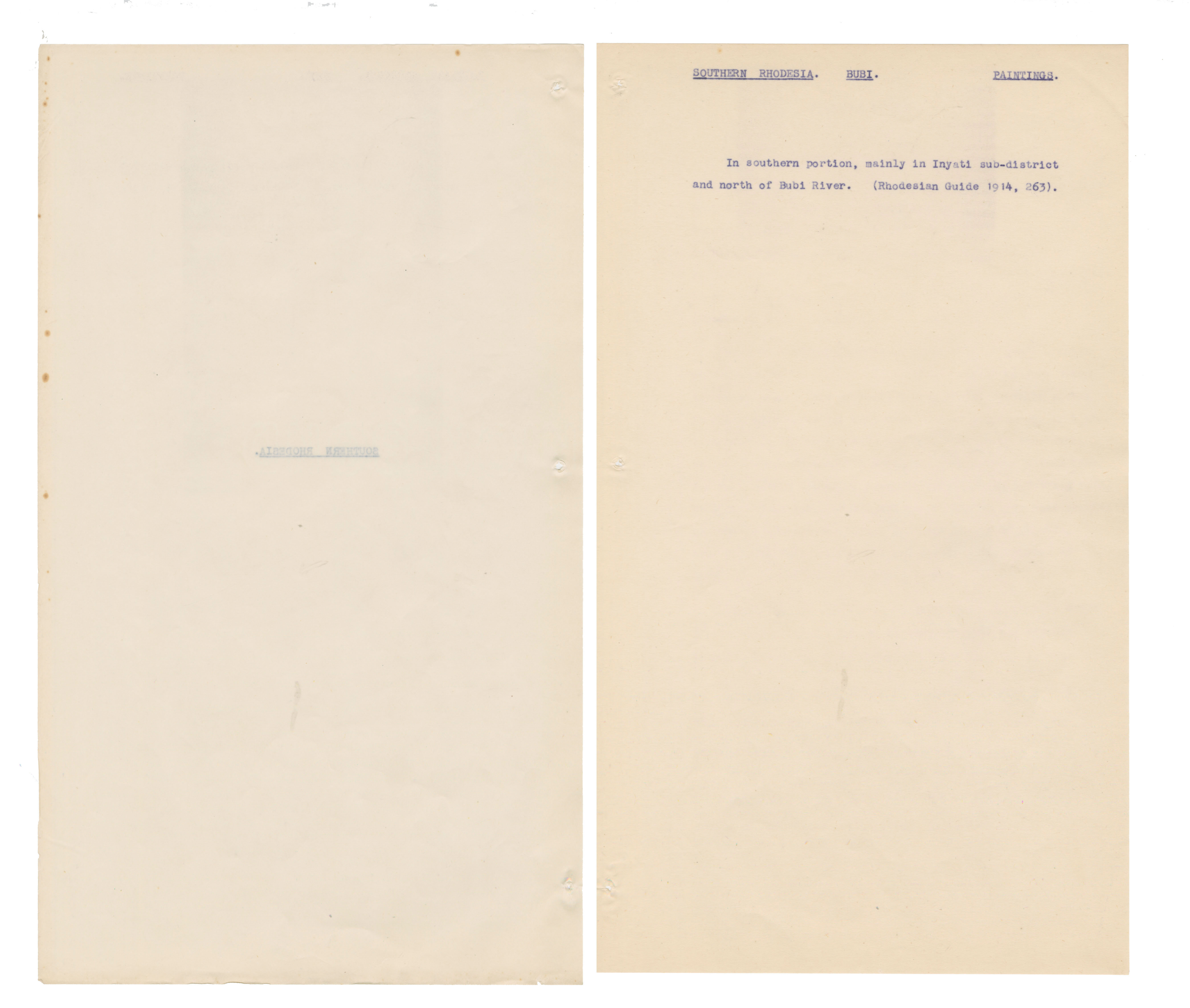 Typewritten notes (facsimiles?) on sheer paper about southern African rock engravings.