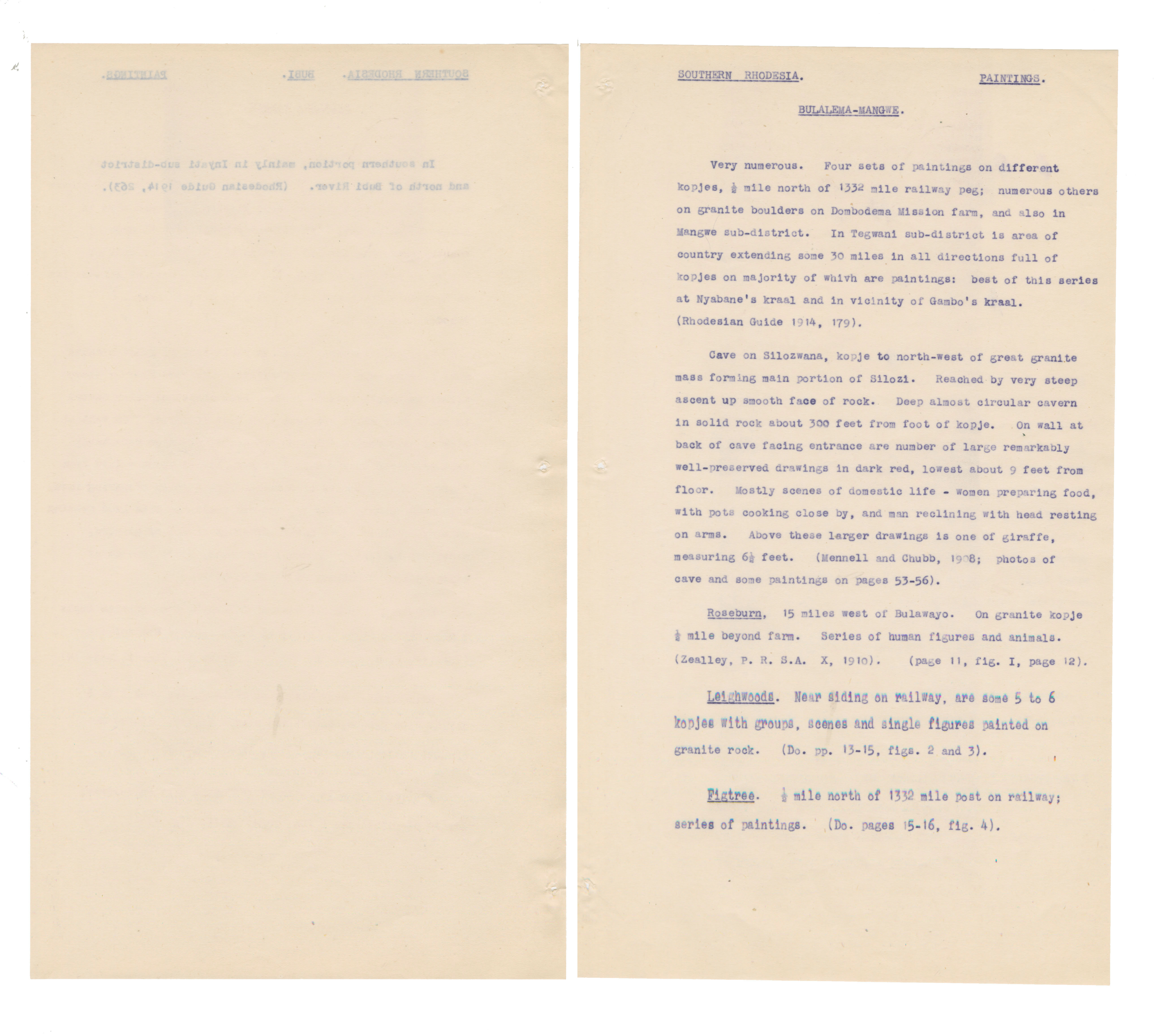 Typewritten notes (facsimiles?) on sheer paper about southern African rock engravings.