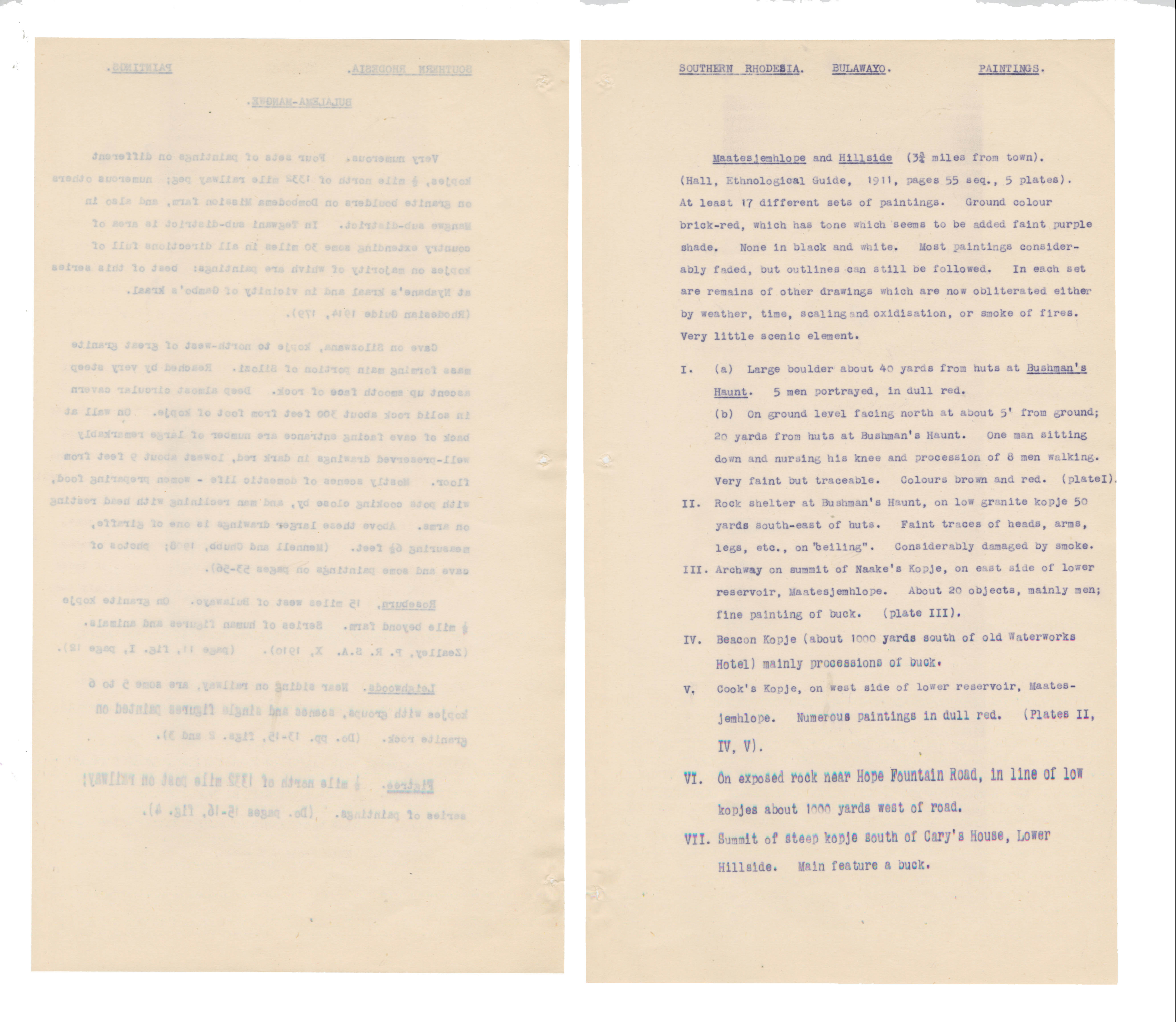 Typewritten notes (facsimiles?) on sheer paper about southern African rock engravings.
