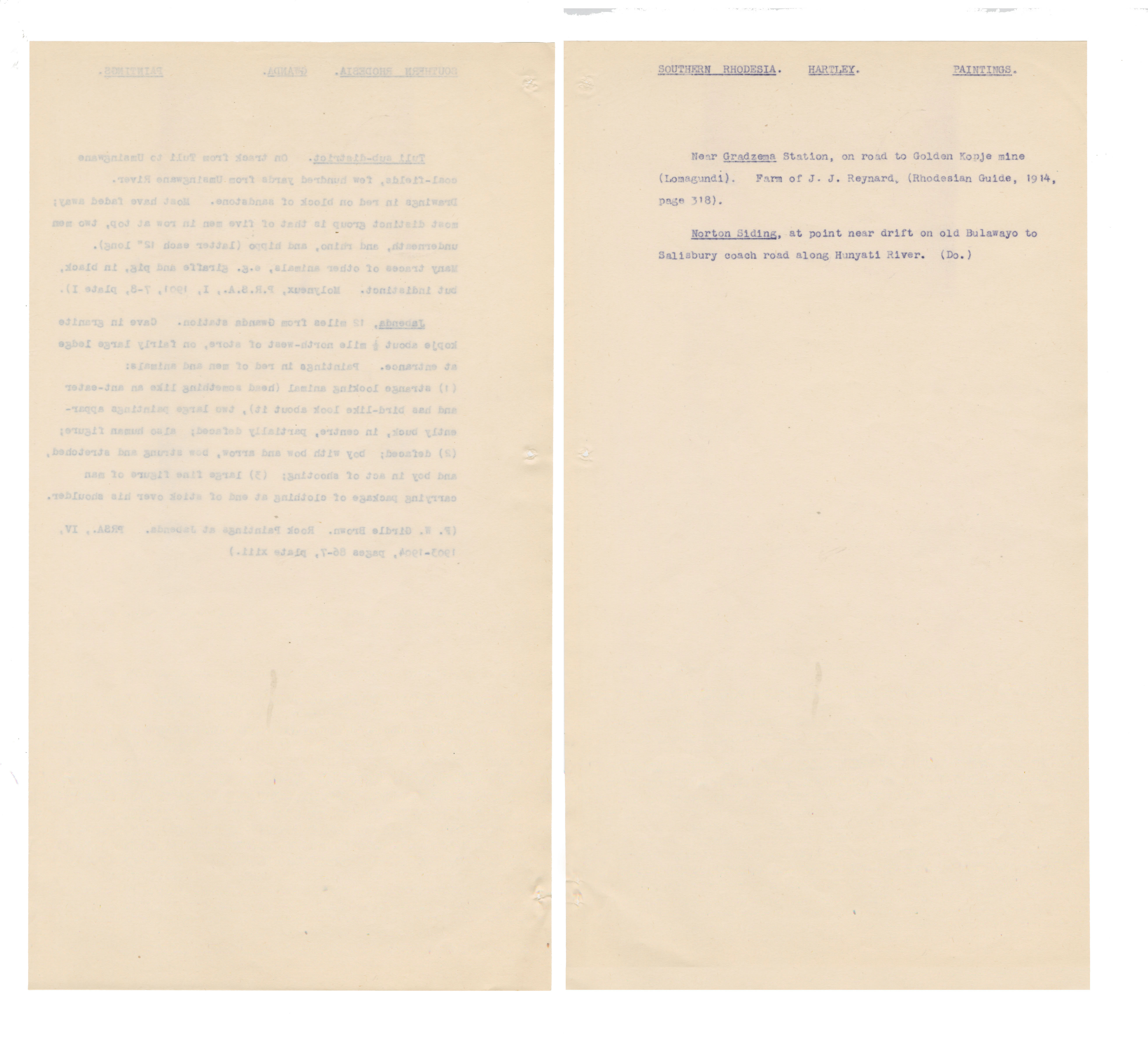 Typewritten notes (facsimiles?) on sheer paper about southern African rock engravings.