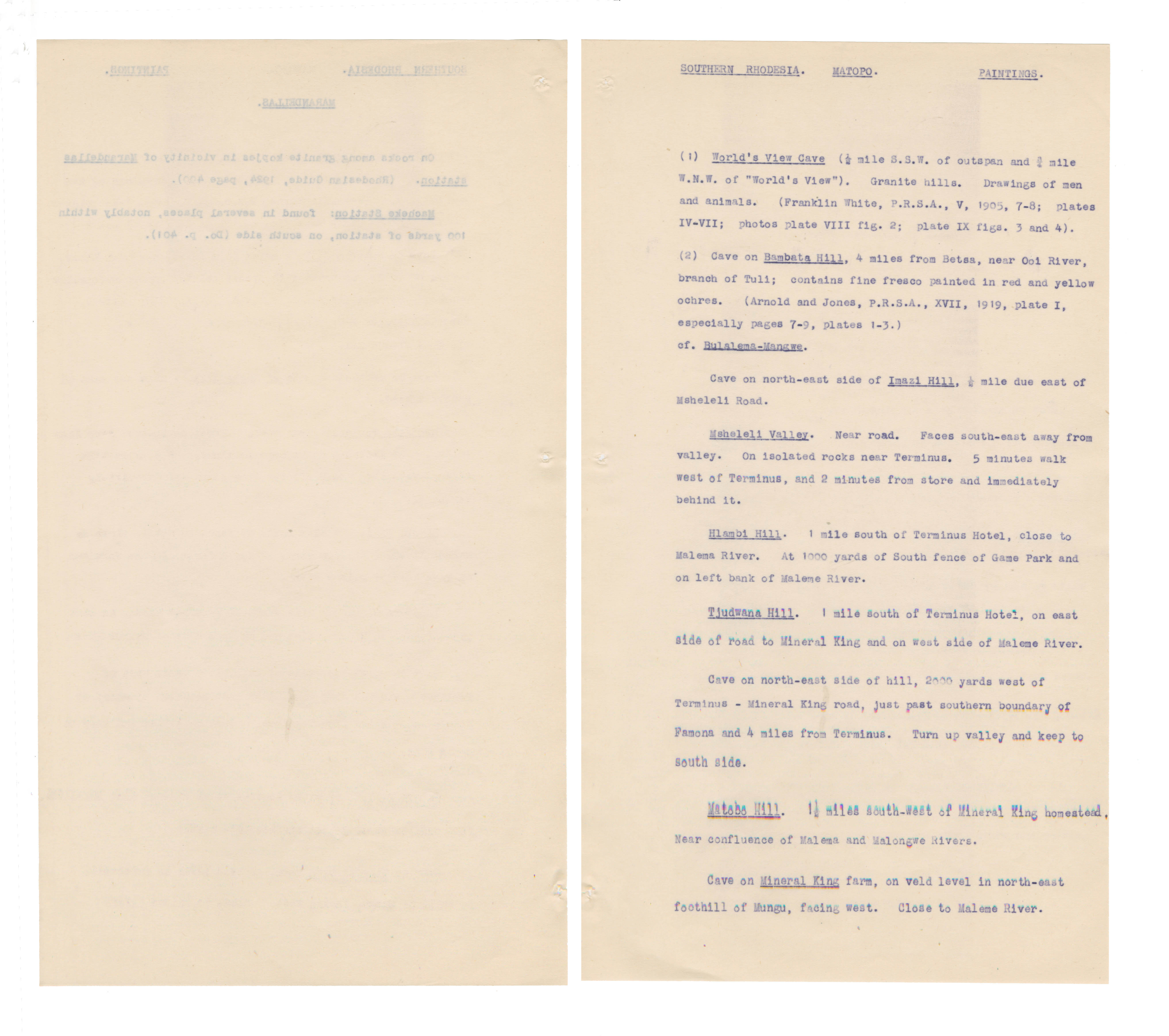 Typewritten notes (facsimiles?) on sheer paper about southern African rock engravings.