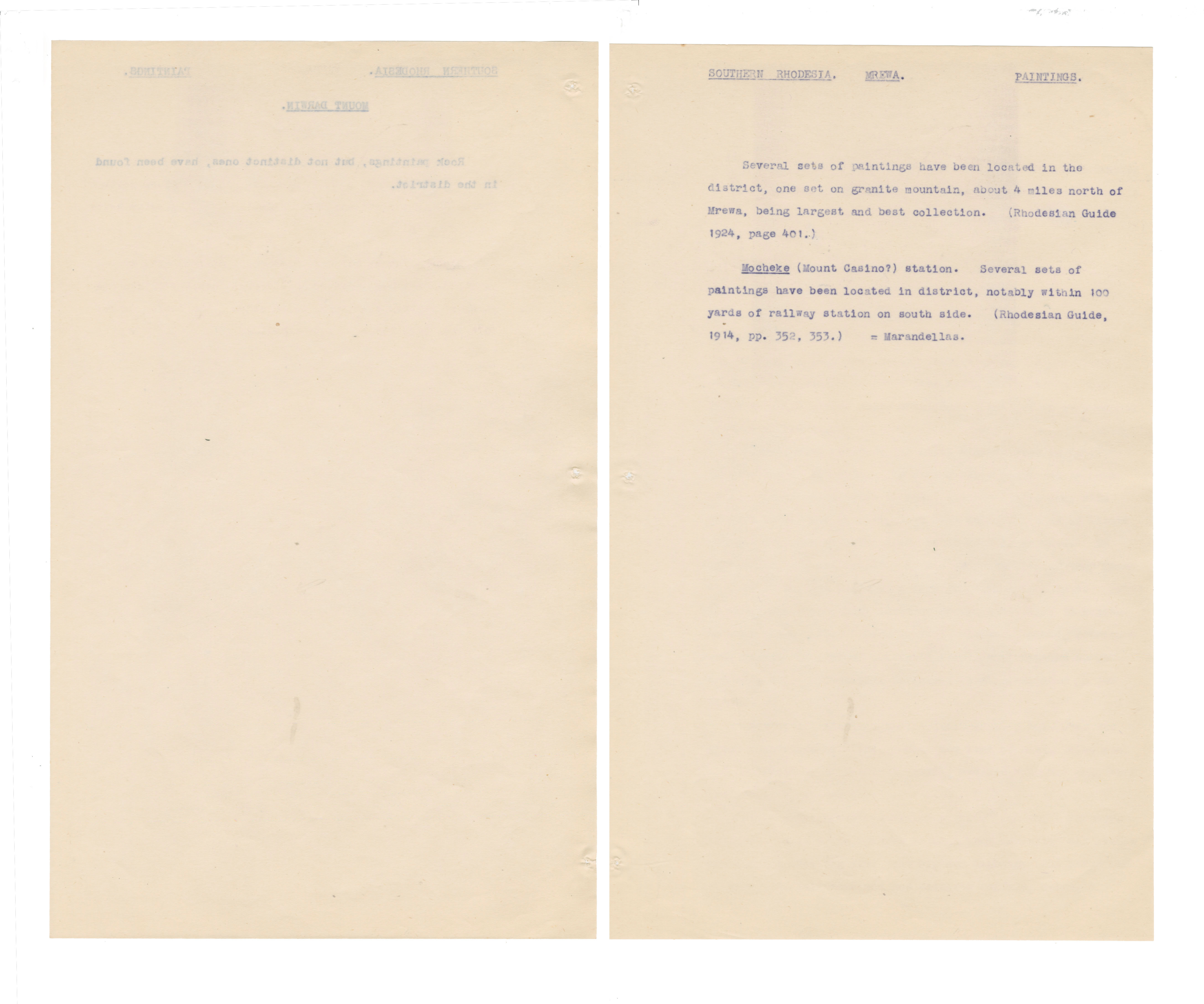 Typewritten notes (facsimiles?) on sheer paper about southern African rock engravings.