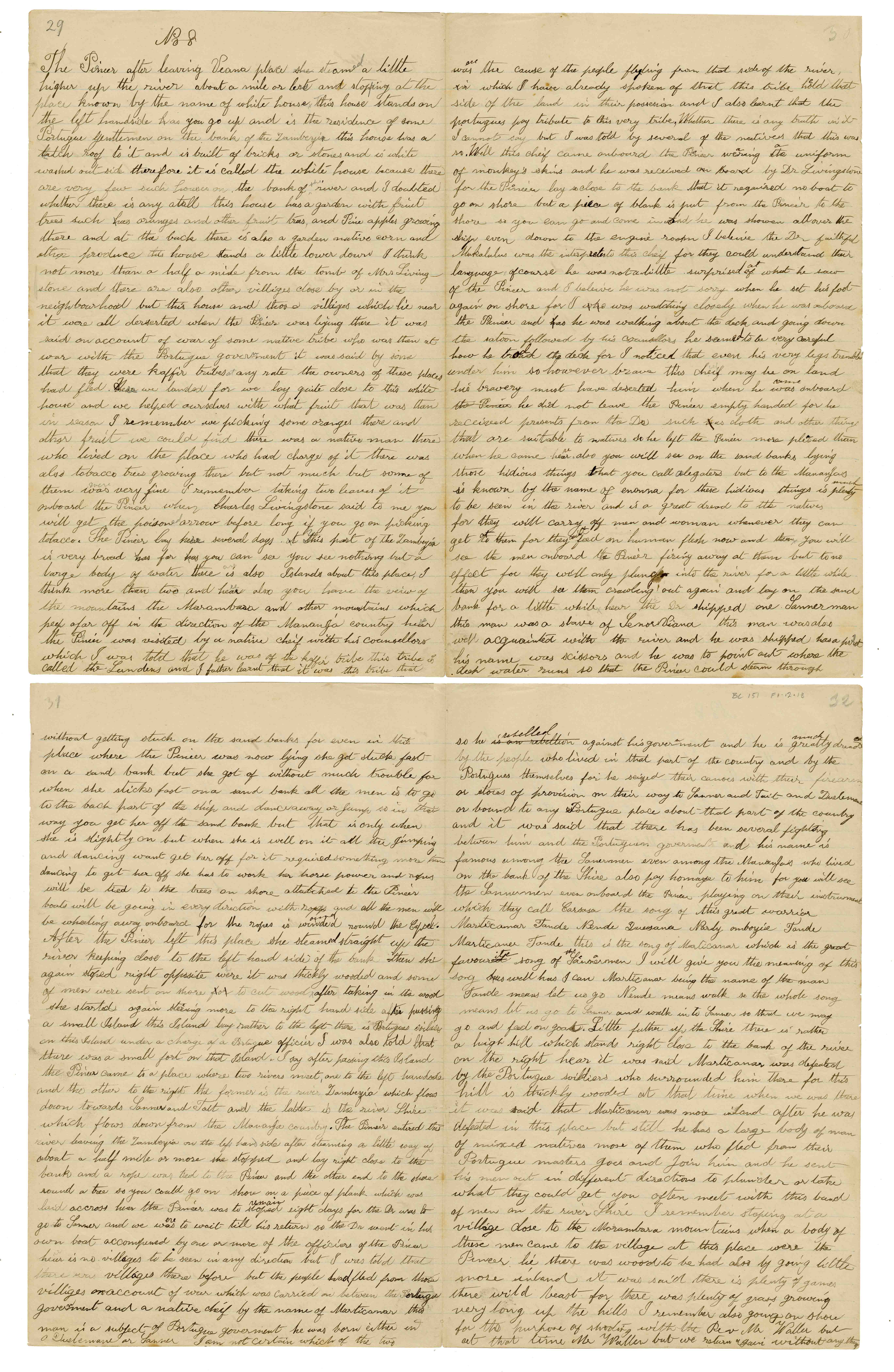 Sheet No. 8 of 'A Negro's History of Bishop Mackenzie's Mission to Central Africa' (MS), partly corrected by WHI Bleek. The Universities' Mission to Central Africa (UMCA), led by Bishop Charles Mackenzie, operated in a region that crossed what are now the borders of Mozambique and Malawi (formerly Nyasaland). After Mackenzie's death (in 1862) and the failure of the Magomero mission, the UMCA relocated to other areas, including Zanzibar, where it became very successful.