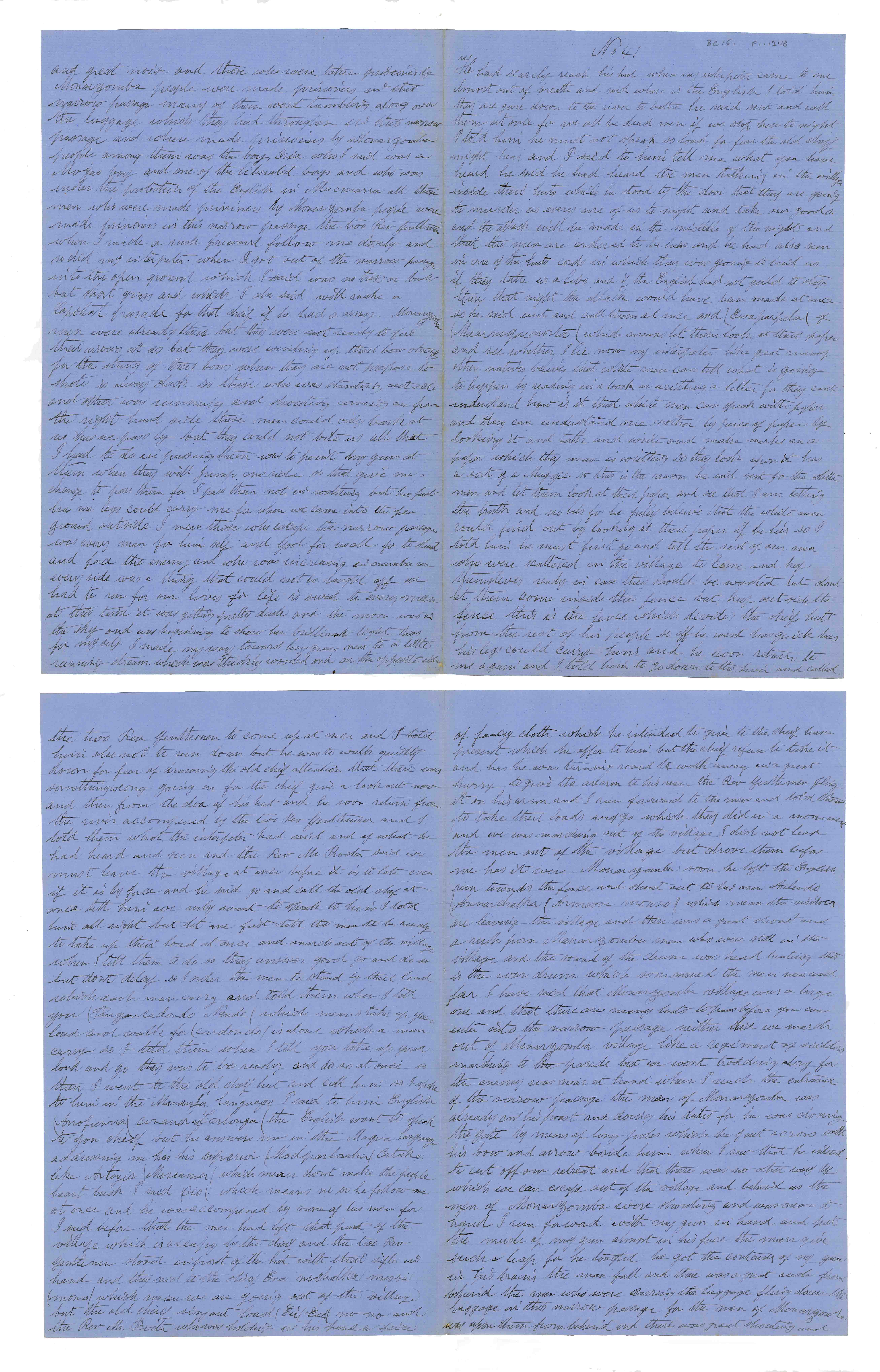 Sheet No. 41 of 'A Negro's History of Bishop Mackenzie's Mission to Central Africa' (MS), partly corrected by WHI Bleek. The Universities' Mission to Central Africa (UMCA), led by Bishop Charles Mackenzie, operated in a region that crossed what are now the borders of Mozambique and Malawi (formerly Nyasaland). After Mackenzie's death (in 1862) and the failure of the Magomero mission, the UMCA relocated to other areas, including Zanzibar, where it became very successful.